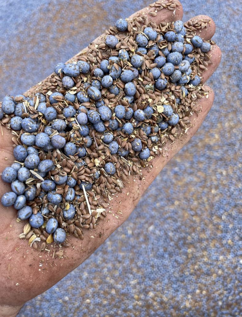 Tim also sent me a picture of an experiment that he is conducting where he will be planting lupins and flax together.