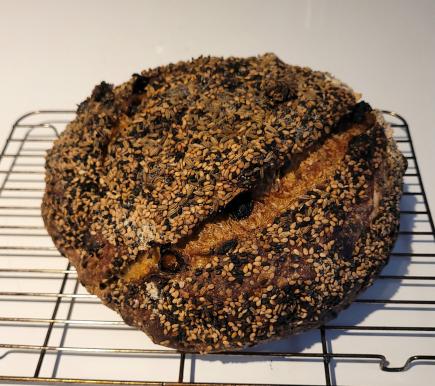 Tasting Notes: Interesting. I think this one needs some adjustments. The Fennel is a strong savory flavor that kind of fights with the sweetness of the raisins. I honestly think that in this exact bake there was too much fennel. The golden raisins are a revelation though, I'm very very pleasantly surprised by how much I like them. The sesame is delicious as always. I included some poppy seeds in the topping but don't know that they bring anything to the party. The orange zest is hard to identify in the flavor and I think the Fennel is to blame.