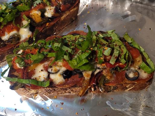 Would I make it again: Yes, and especially for use for making pizza in the summer. The pizza toast above was probably the most delicious pizza I have had in recent years, literally. I've made pizza and have a pretty good recipe and results but this was spectacular. The crust has a nice crunch and the crumb is soft and chewy. I would omit the the garlic from the bread itself as I accidentally did this time (a happy accident) but still roast it to use as a spread later. The great thing about using this bread for making pizza in summer is a quick blast under the broiler and its done, no need to run the oven for hours and pump more heat into the house.