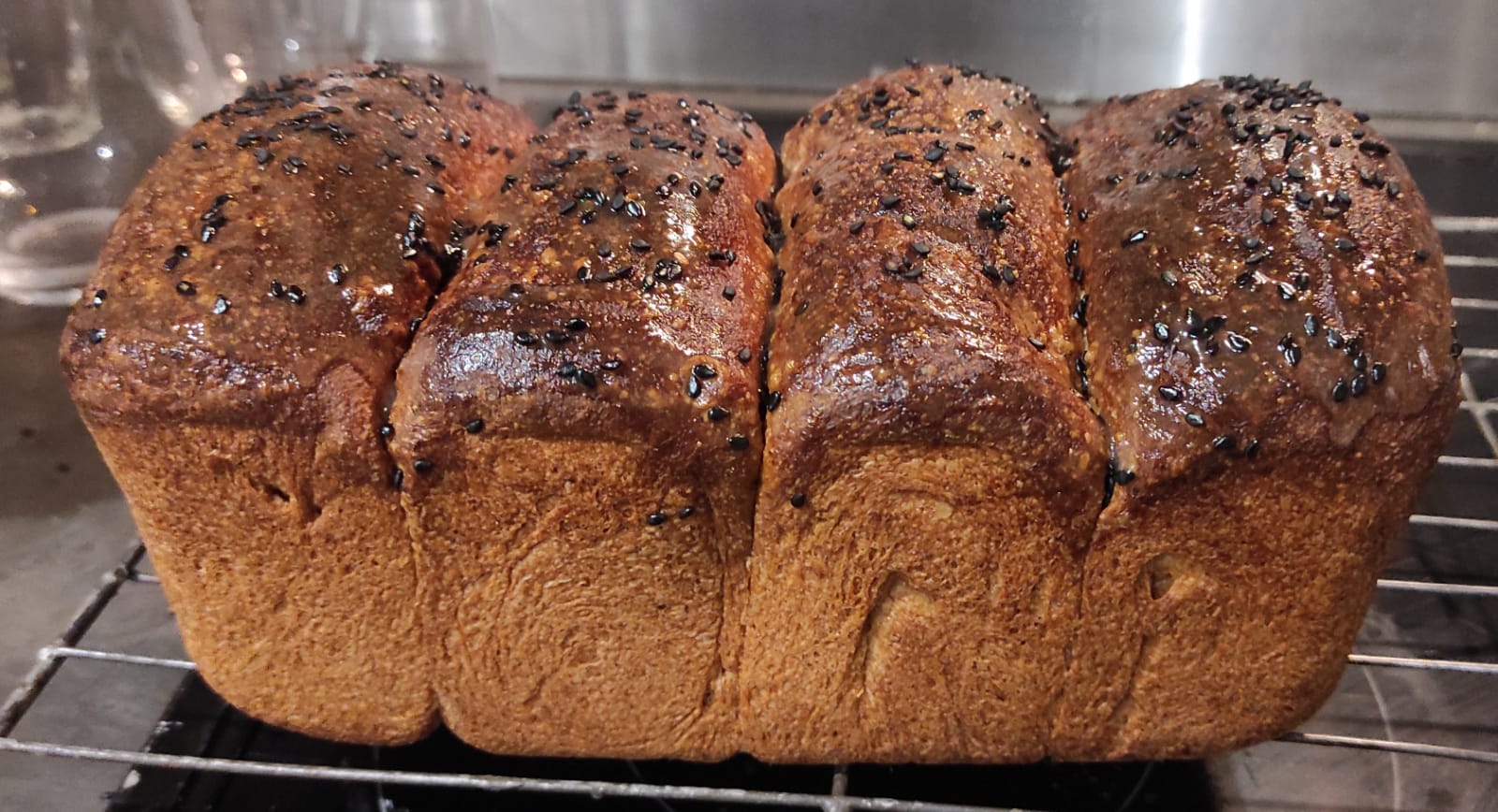 Benny's 100% wholewheat Hokkaido recipe is the recipe that just keeps on giving, and I keep on seeing miraculous loaves coming from the oven even as the recipe is tweaked and stretched which really surprises someone like me who is used to the experience of failed experiments when things are pushed too far.