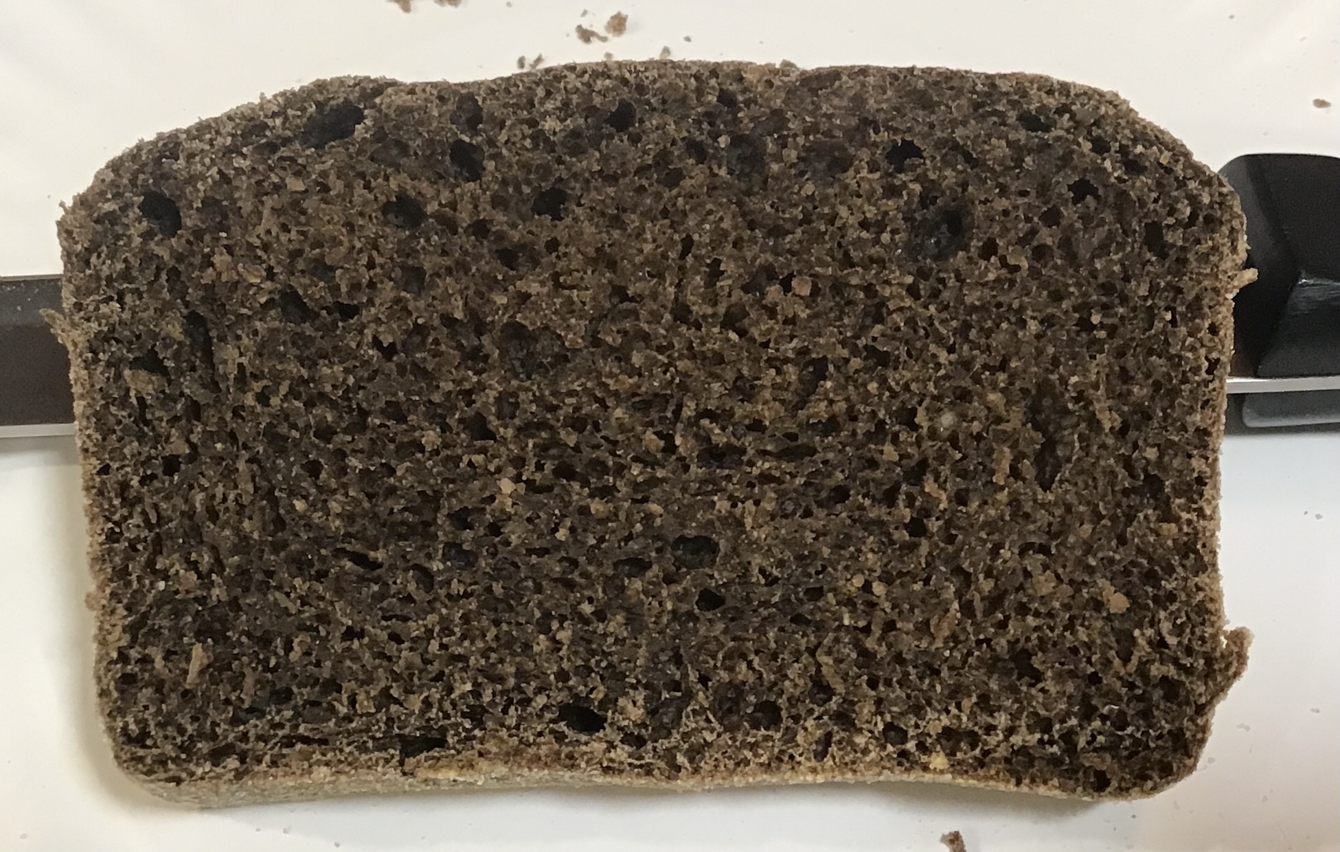 Wow, what a difference the dark roasted ("chocolate") rye malt makes. Compare above crumb photo to the previous: