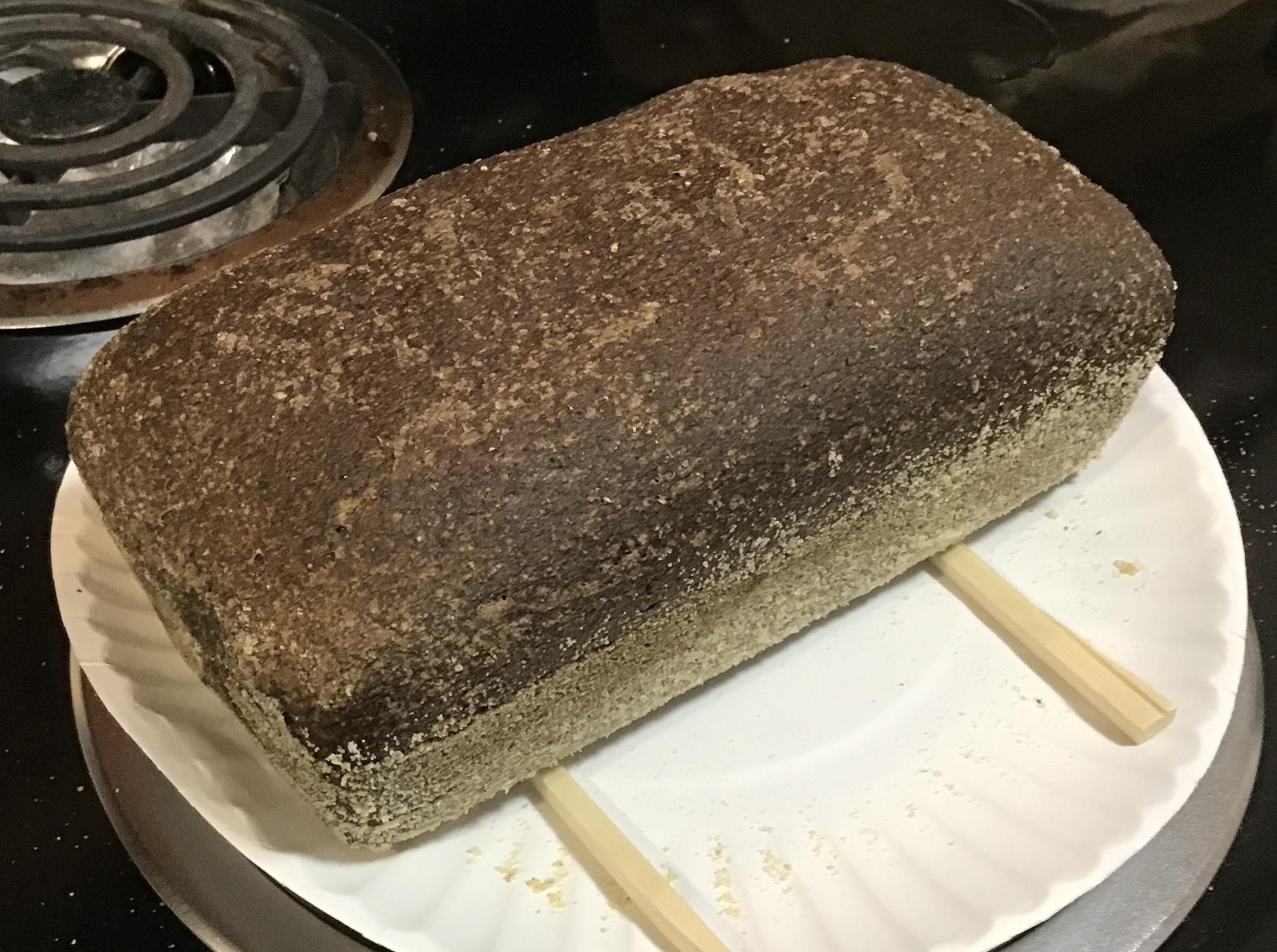 Added some ground "chocolate rye malt."  I.E., malted rye that was roasted to a dark color and has a chocolatey almost coffee-like aroma/flavor. Purchased, as whole kernals, from a home-brewing supply store, then ground in a coffee/spice grinder.  (It's malted/roasted so it is not as hard on the grinder as raw kernals.)