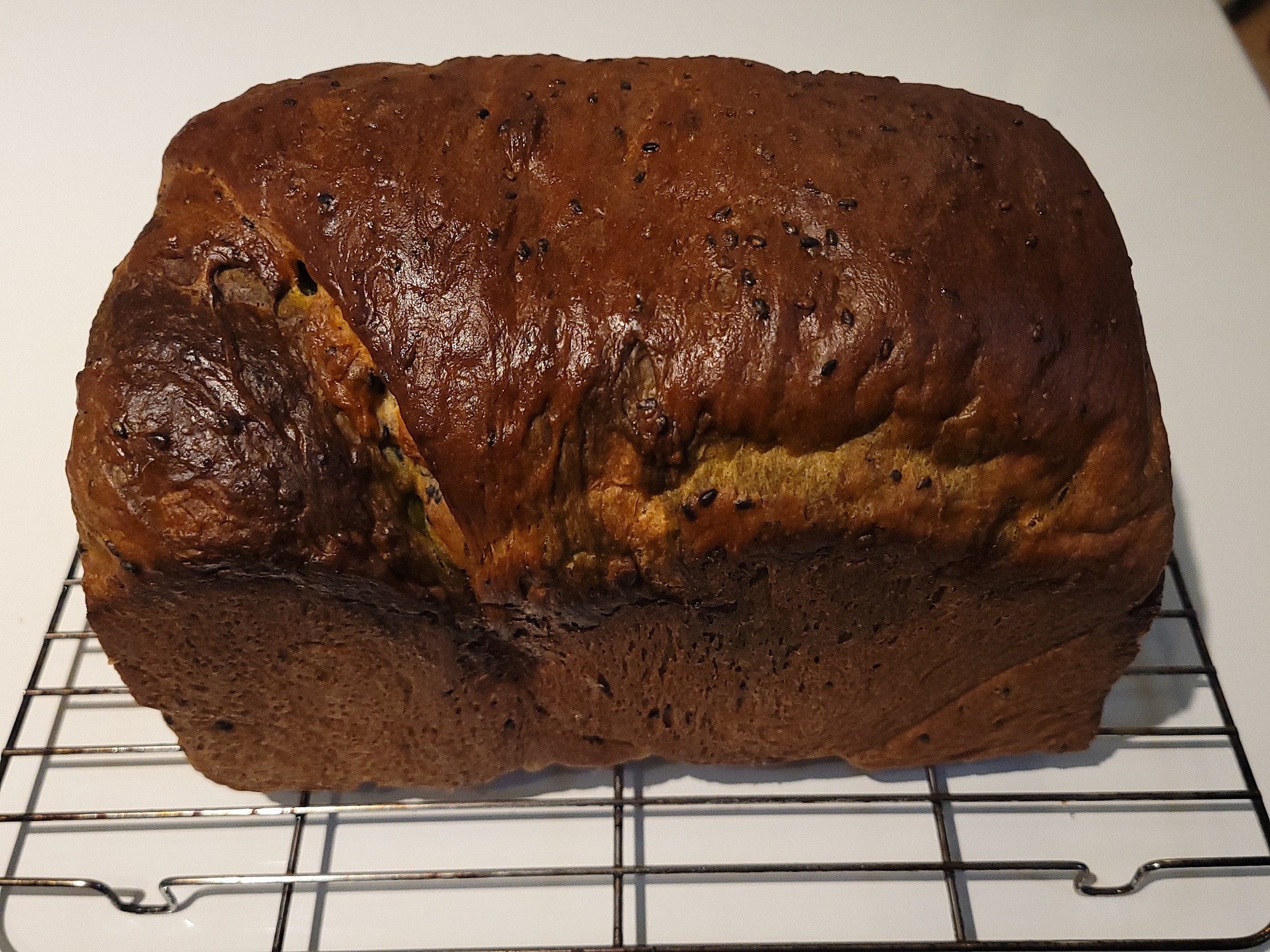 Tasting Notes: Soft and sweet. This would make amazing French toast for breakfast. I've enjoyed it lightly toasted with some butter and even just as is. The sesame is a bit strong and can overpower the other flavors, however if I pull a part of the bread apart and eat the flavors individually they are present. I could honestly see doing this again as just coconut...or just matcha or maybe even a coconut pineapple bread.