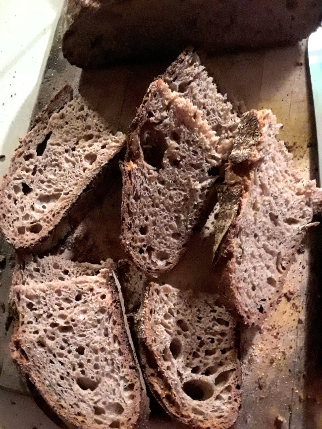 6. continue bulk ferment overnight 9 hrs. (temp. low 60s)