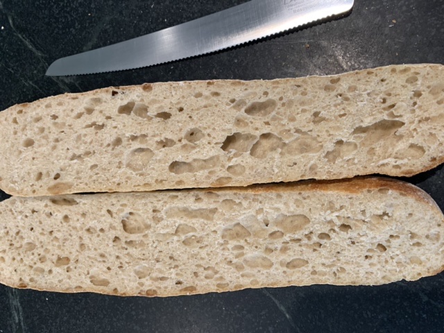 I had tried the 36 hr cold retard baguette years ago and had terrible results. I have to give credit to the flour this go round and patience, which isn’t my long suit!