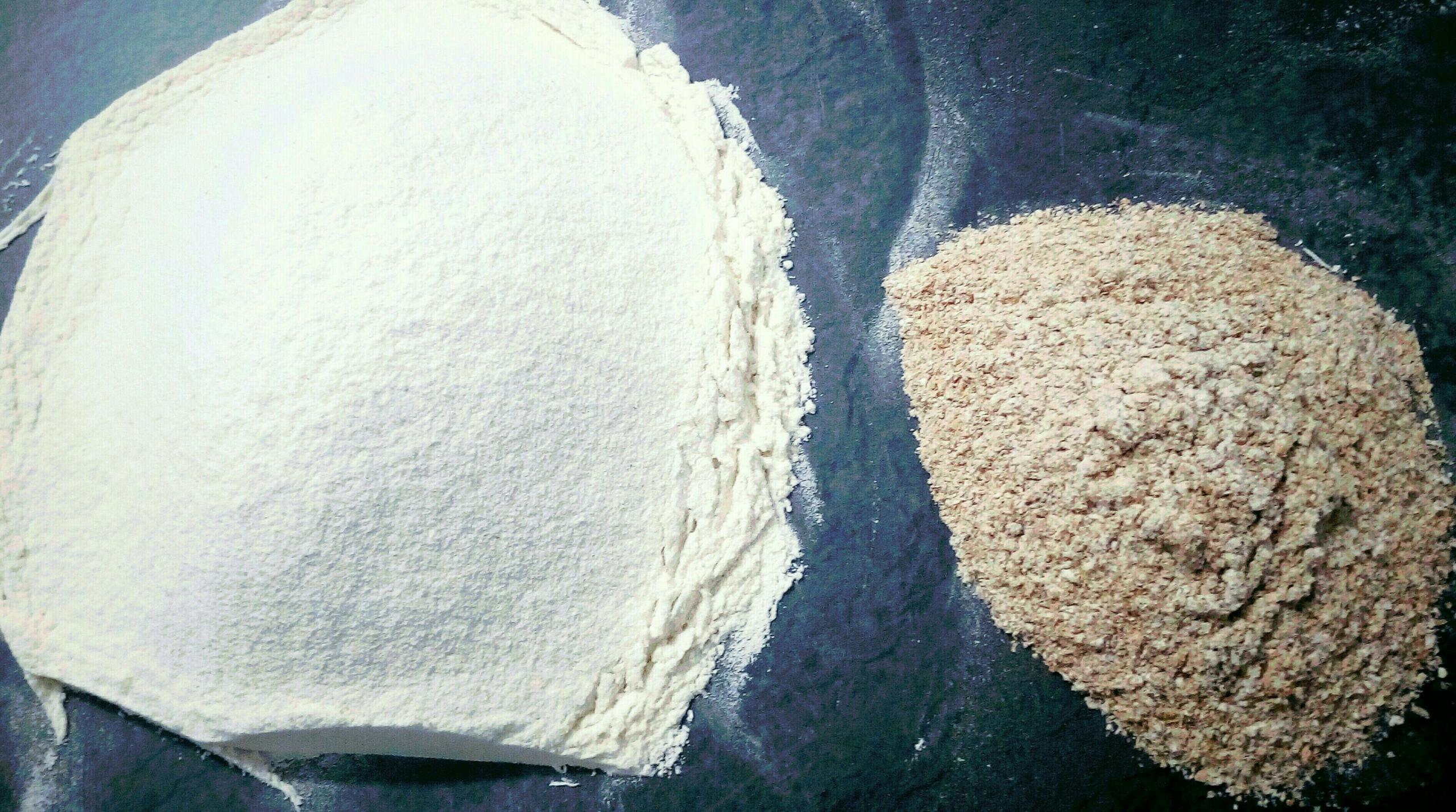 1. The whole wheat flour is divided into two parts by sifting it with a #50 mesh. One part -call it fine- that passes through the mesh (bolted) and another -call it coarse- that doesn’t, roughly 7:1 by weight.