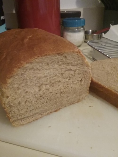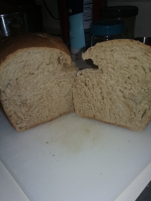 Edit: I was going to go buy store bread but asked my kid if he wanted me to buy a loaf or make one. He said he would rather me make this again! (happy dance time!). So I made two more loaves tonight (11/19) since we had two slices left. Now to figure out why it's crumbly compared to the store bought. The crumbly part was my husband's complaint, other than it not being pre-sliced.