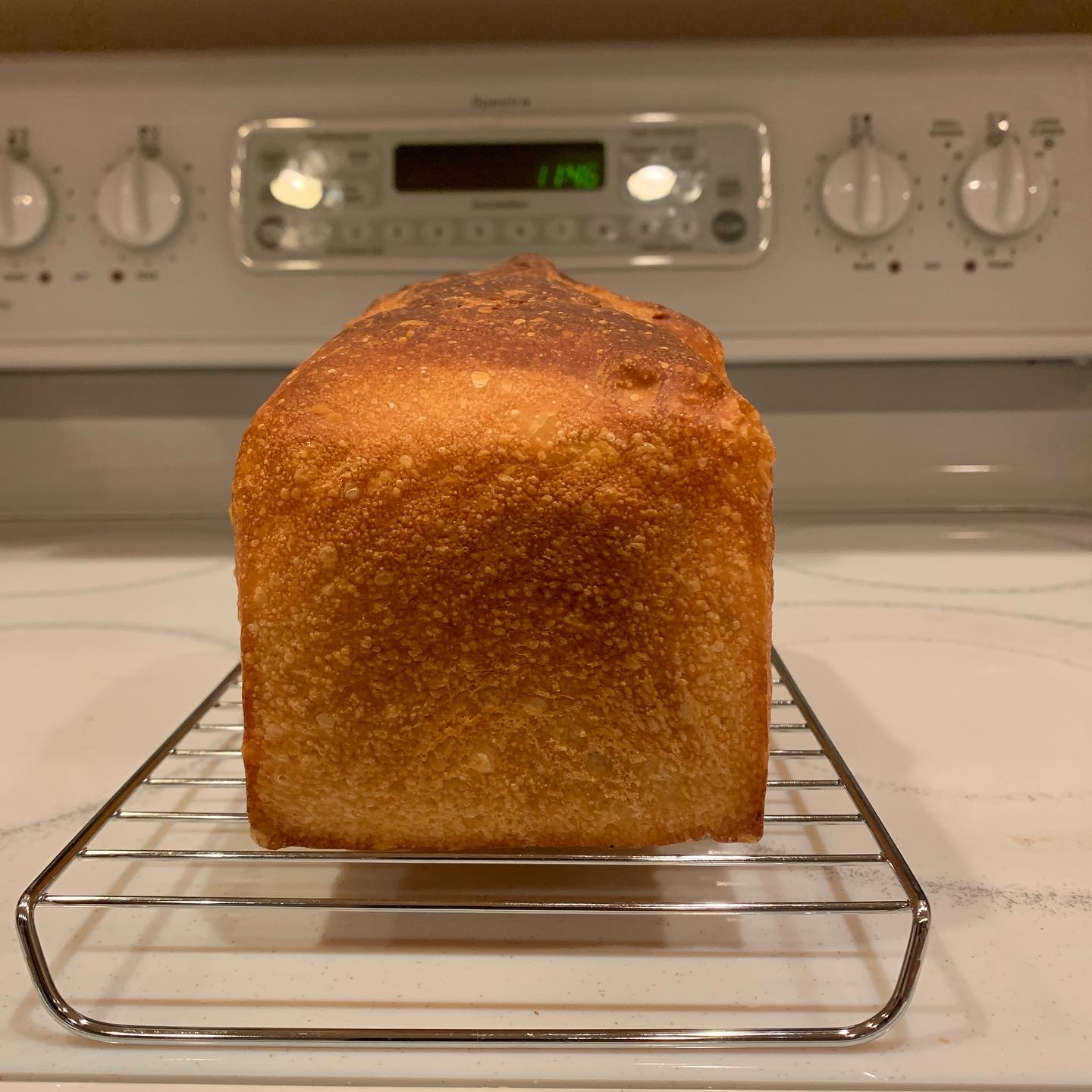 I’m always surprised when recipes call for a biga or poolish and then still add more IDY at mix. I would think that increasing the percentage of pre-ferment would be better to improve the flavour and speed up fermentation if that is what the additional IDY at mix is for. Regardless this is a nice bold bake Troy. I too have never seen blisters on the sides of pan breads before, that is quite cool.