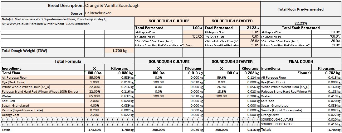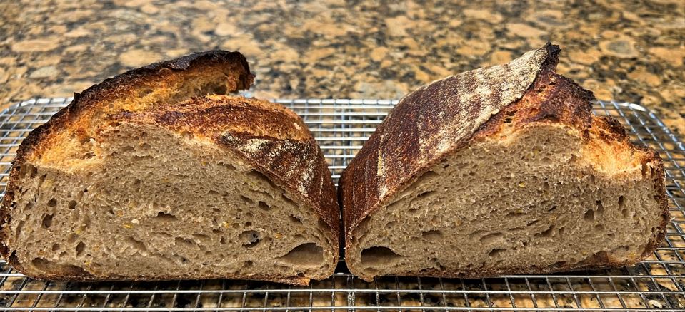 This bread is a mix of fresh milled hard winter red wheat and white whole wheat flour and AP flour combined with some orange zest I had in the freezer and vanilla extract. I was going for a mild orange/creamy flavor profile that I think I've achieved.
