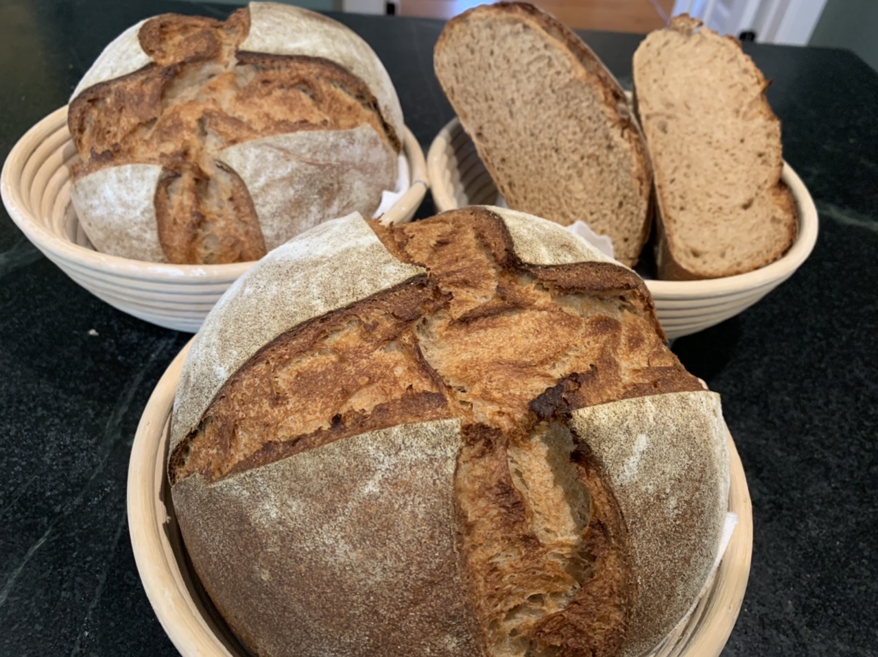 I am very pleased with the crumb and crust and amazing wheat flavor. Made great grilled cheese sandos. Don’t recall ever making 3 loaves as identical as these 3! 😊