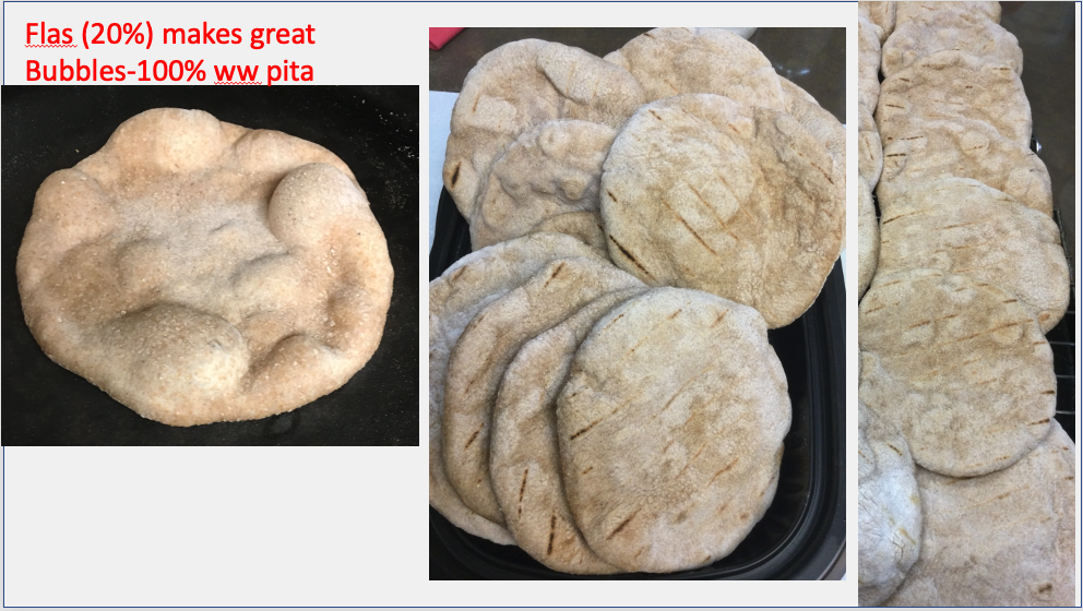 Flas (20%) and clas make super bubbles in pita dough- watch them expand on the stove top! Log in or register to post comments