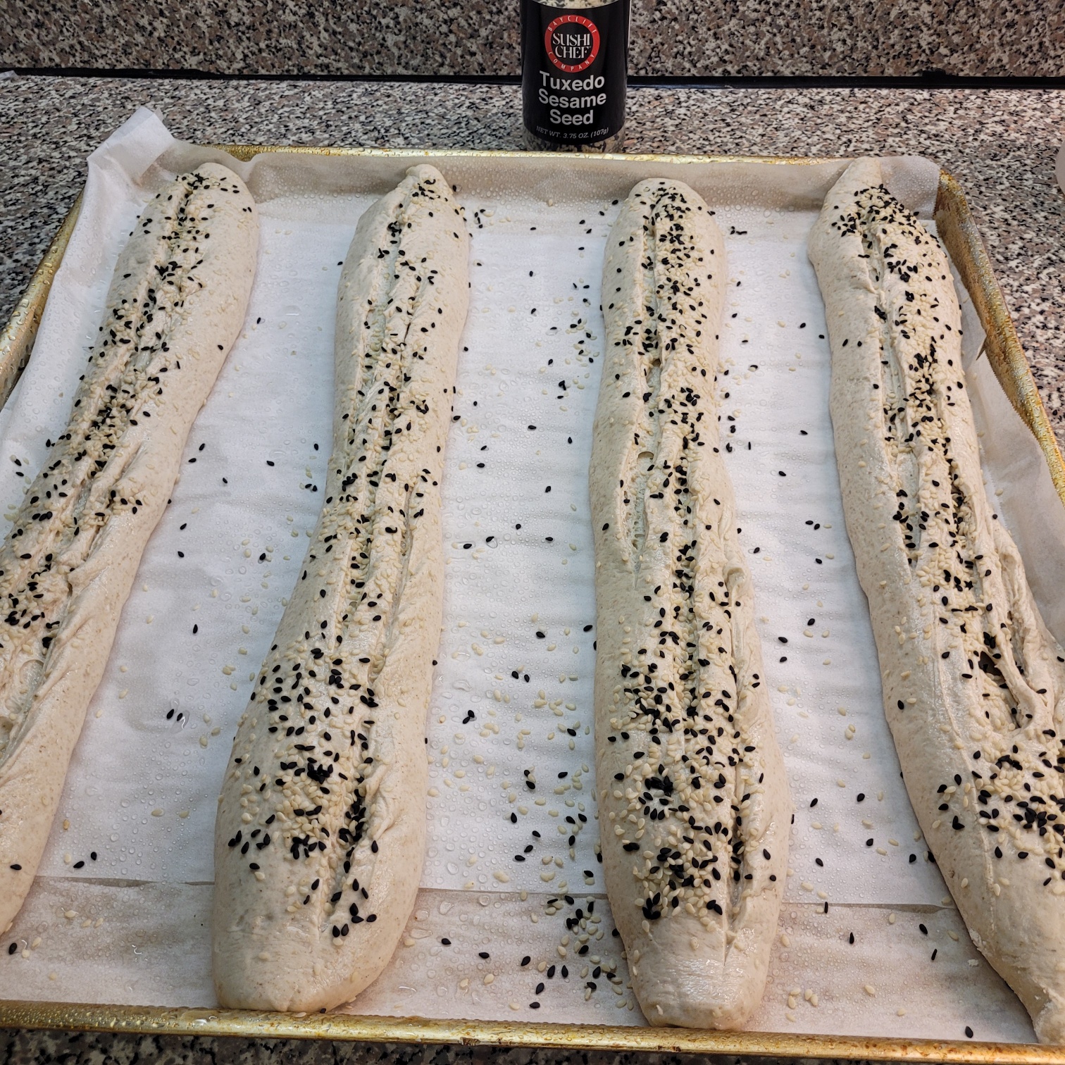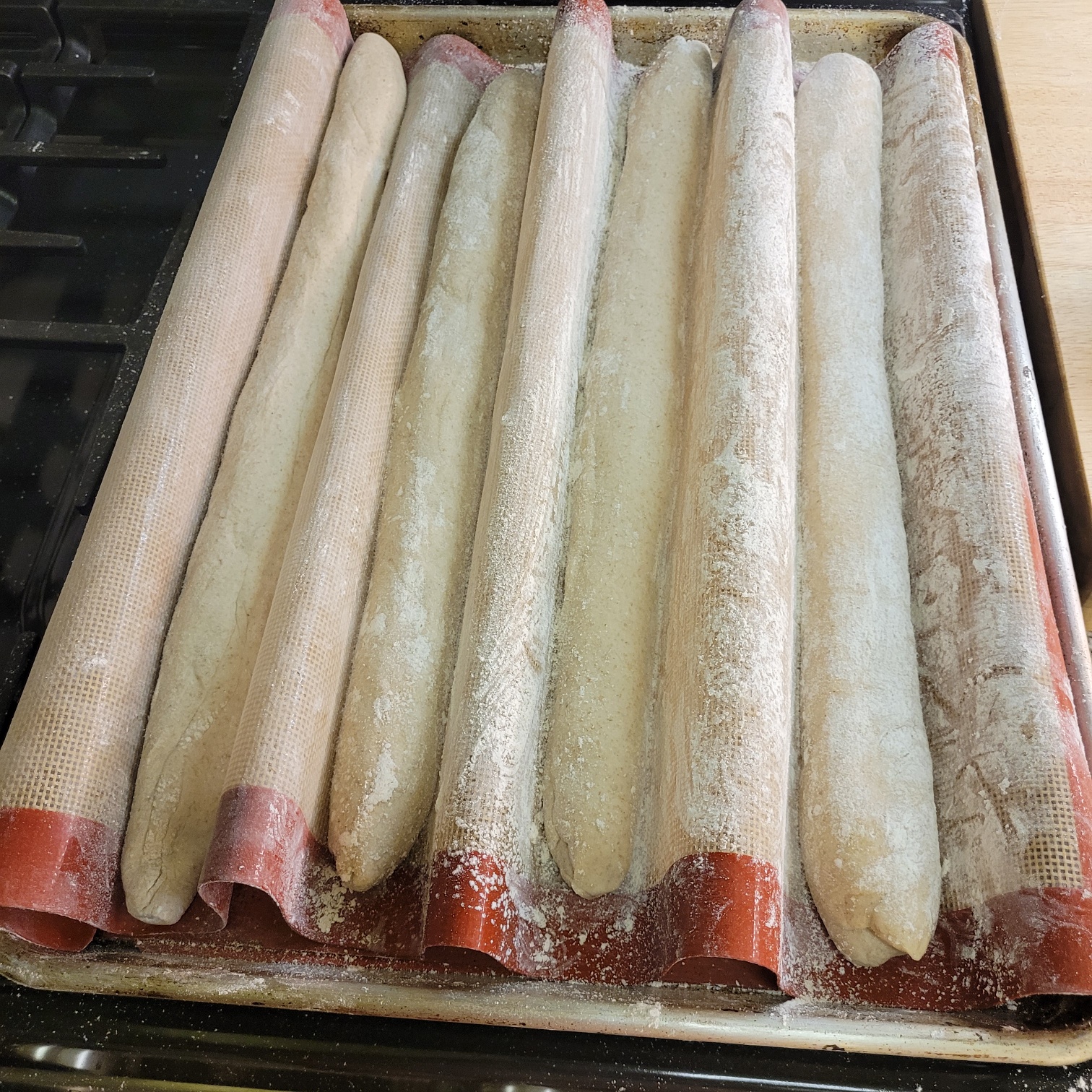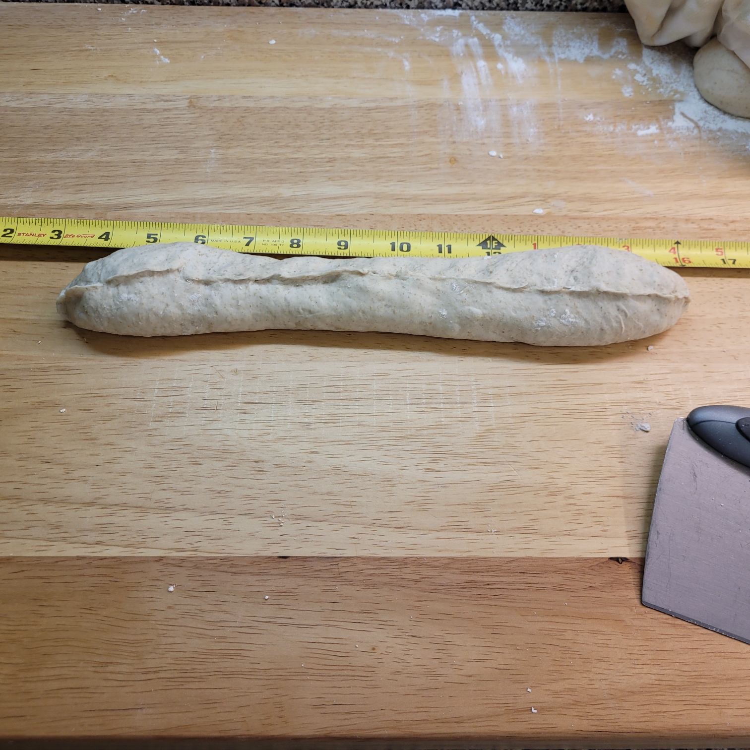 I was careful about getting the length right this time to avoid compressing them into the 16X16 baking pan. 151/2-16" is an inch shorter than I prefer. However, at that length, I can bake all four in one pan. Fingers crossed for an even better finish!