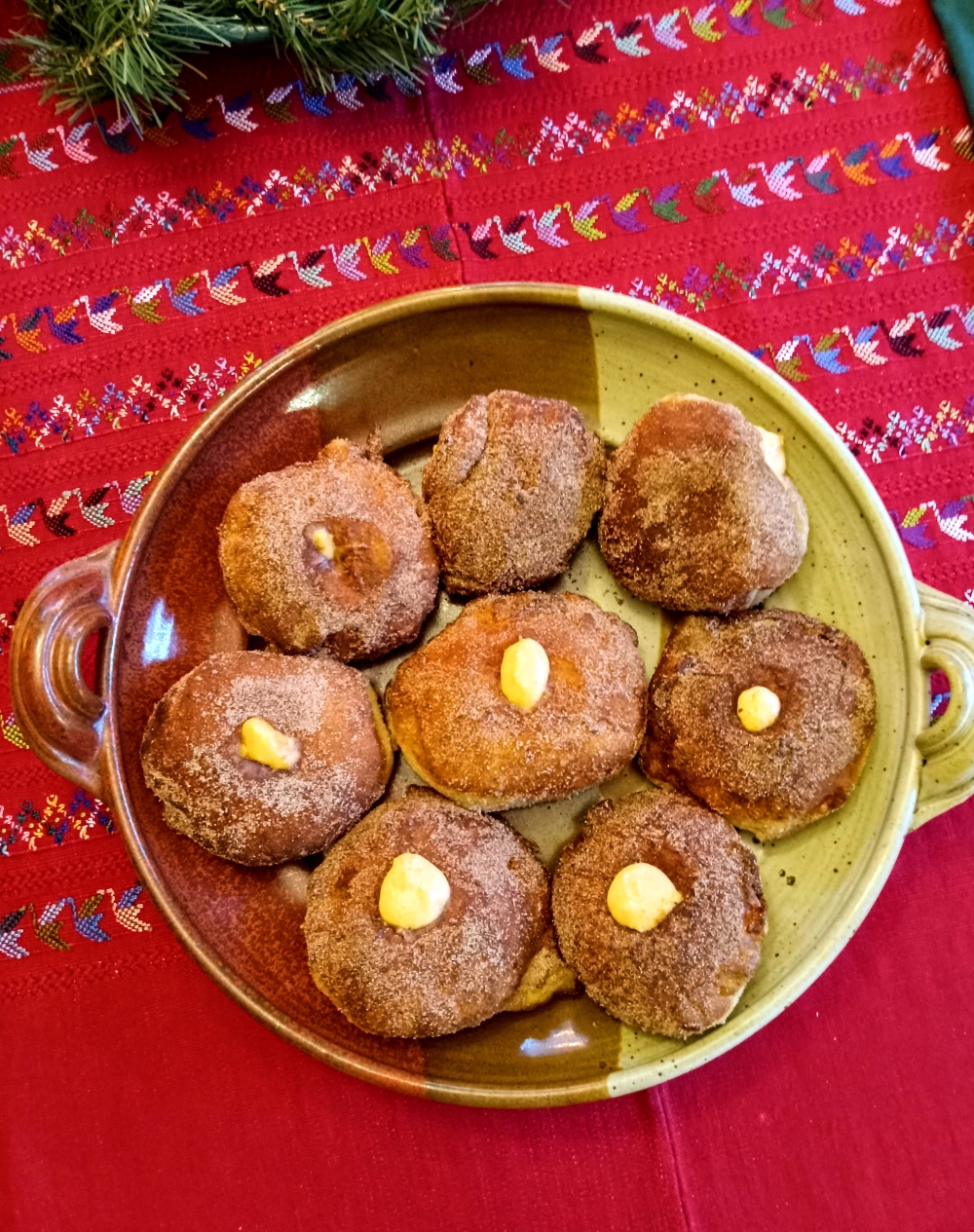 The farm I worked for this year sold at a farmers market in Atlanta at which a small bakery, Osono Bread, sold very good bread but, more importantly, top-notch cream-filled doughnuts. I've been wanting to attempt something akin to them this whole year. I finally got around to it for Christmas morning!