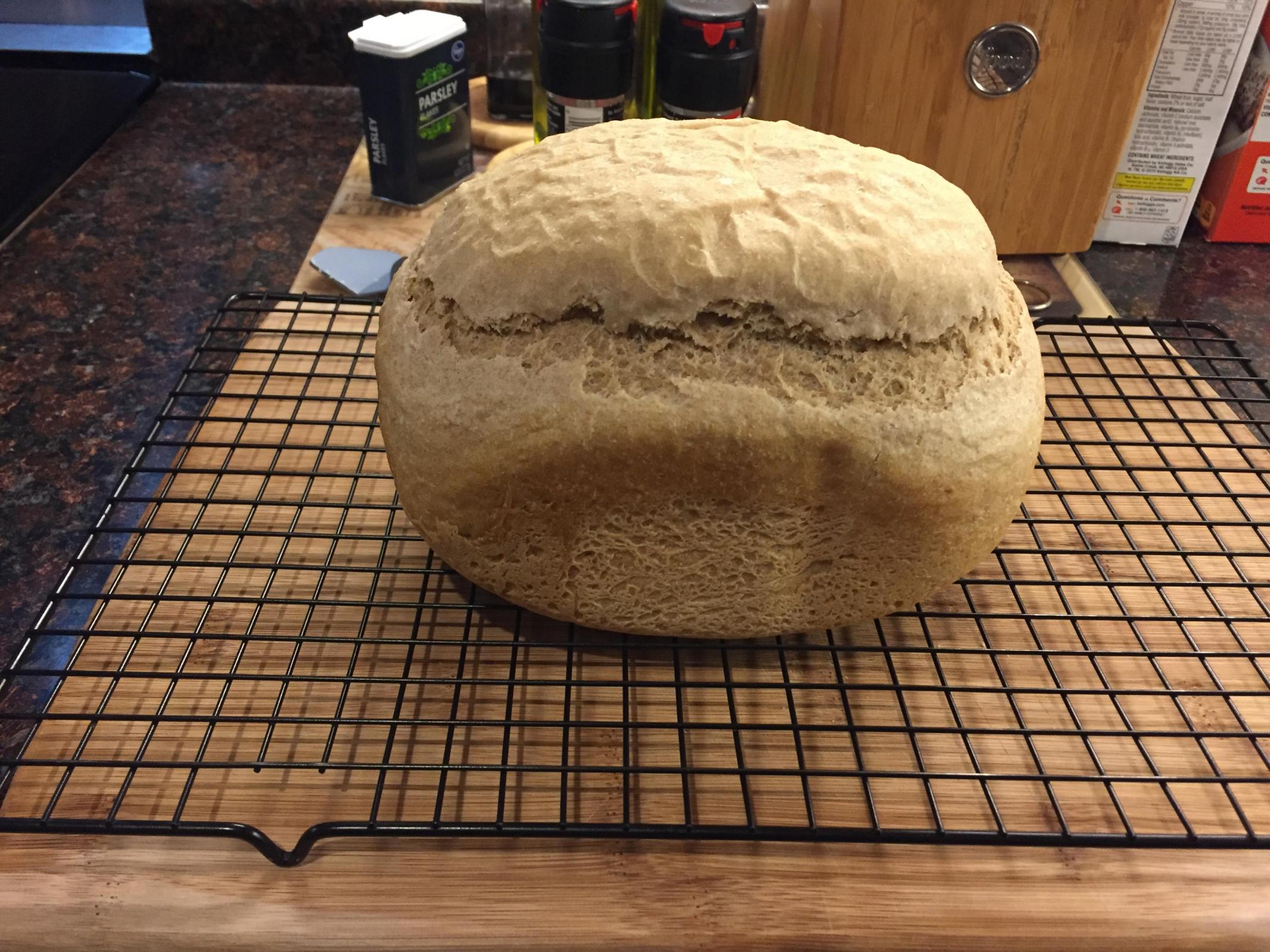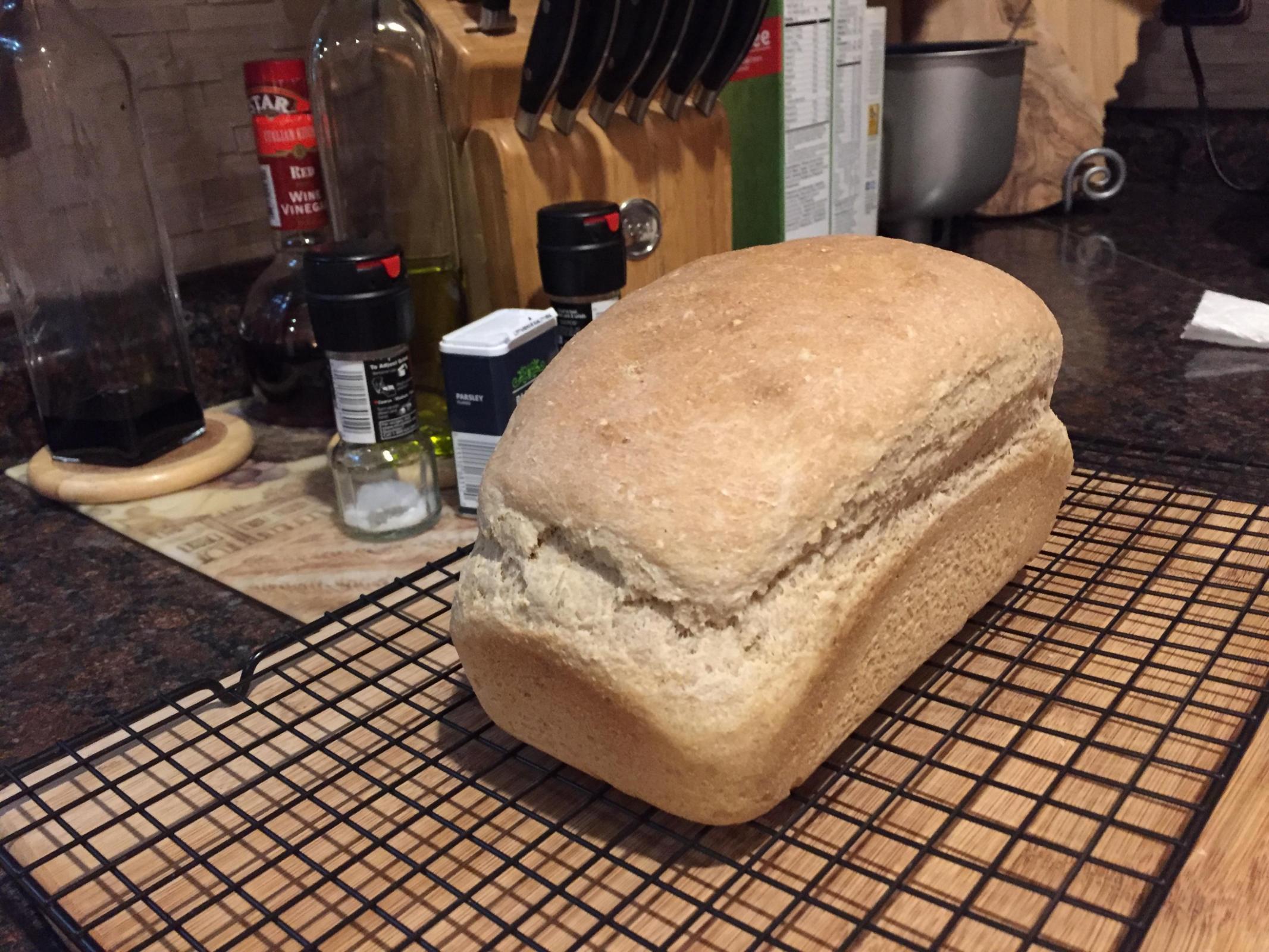 I am beginning to get my bulk rise/proofing issues resolved, which is good. This machine allows for 'memory' courses so I have been able to program much shorter rises and eliminate the third rise altogether. My dough has always run away from me with proofing in our house - maybe we keep it too warm in here (our room temp is generally ~75oF) I don't know. It always rises so much that it pretty much fills the entire pan before baking, and there are occasional bubbles developing on the top of the dough.