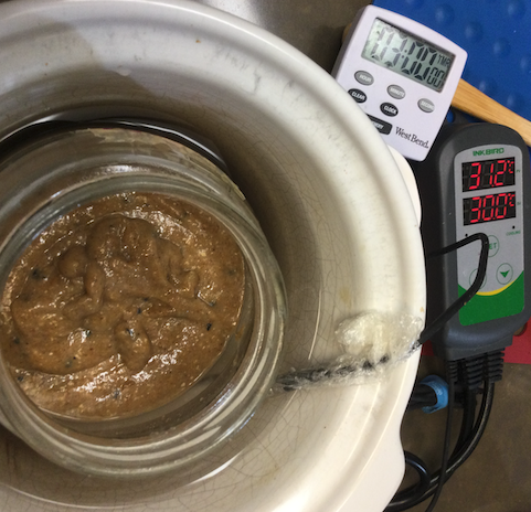 Place in proofer set at 31C. Wait until dough doubles (2h 15 min).