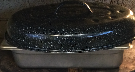 240C/464F in covered pan-10min; 200C/392F with lid off - 30 min. (Lots of mishandling below!)
