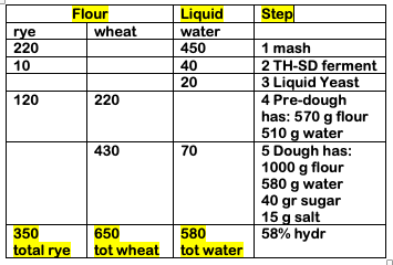- 120 gr TH-SD starter (24g rye grains, 96g water)