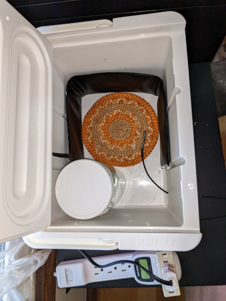 That's some contraption ya got there. But...why not just wrap the mat around the jar? Is it too hot? Is there too much fluctuation in temp from the mat itself? Right now I'm using something meant for Kombucha and its a little too big but it maintains a temperature that my starter seems to like.