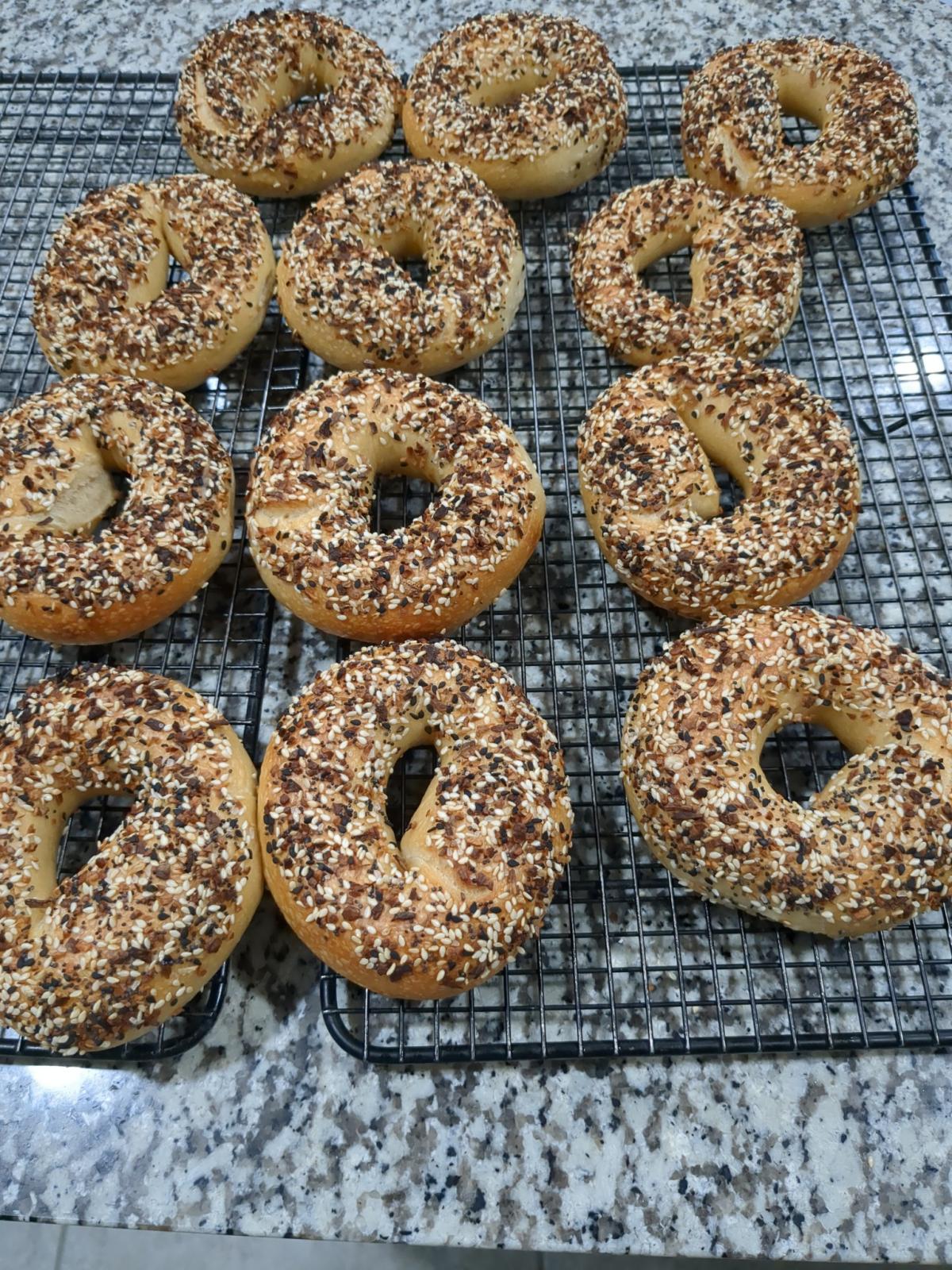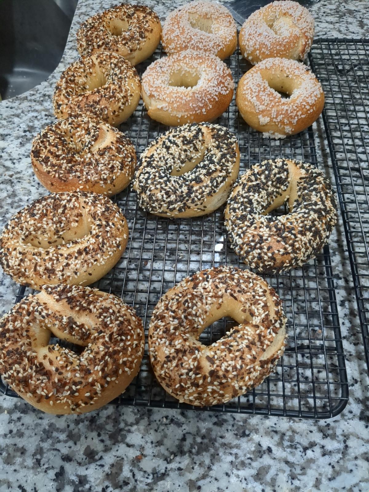 Those look like some top-notch bagels! Makes me want to try baking some myself again. What hydration level do you recommend for bagel dough?