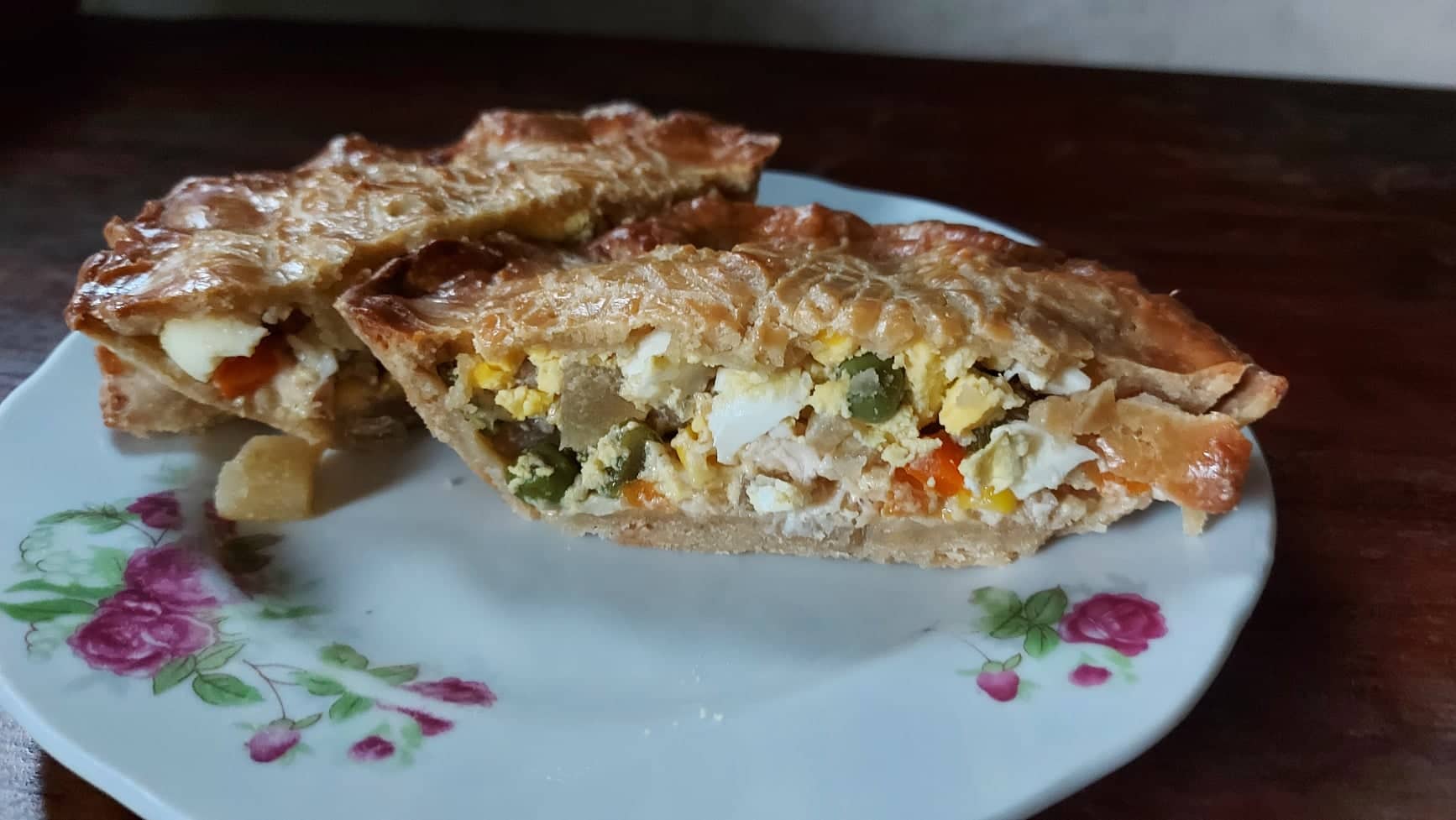 So I made some chicken pot pie with a local twist. The filling was made with jicama, mixed vegetables (carrots, corn, and peas), and celery with tender chicken chunks marinated in oyster sauce and fish sauce in a rich cream sauce.