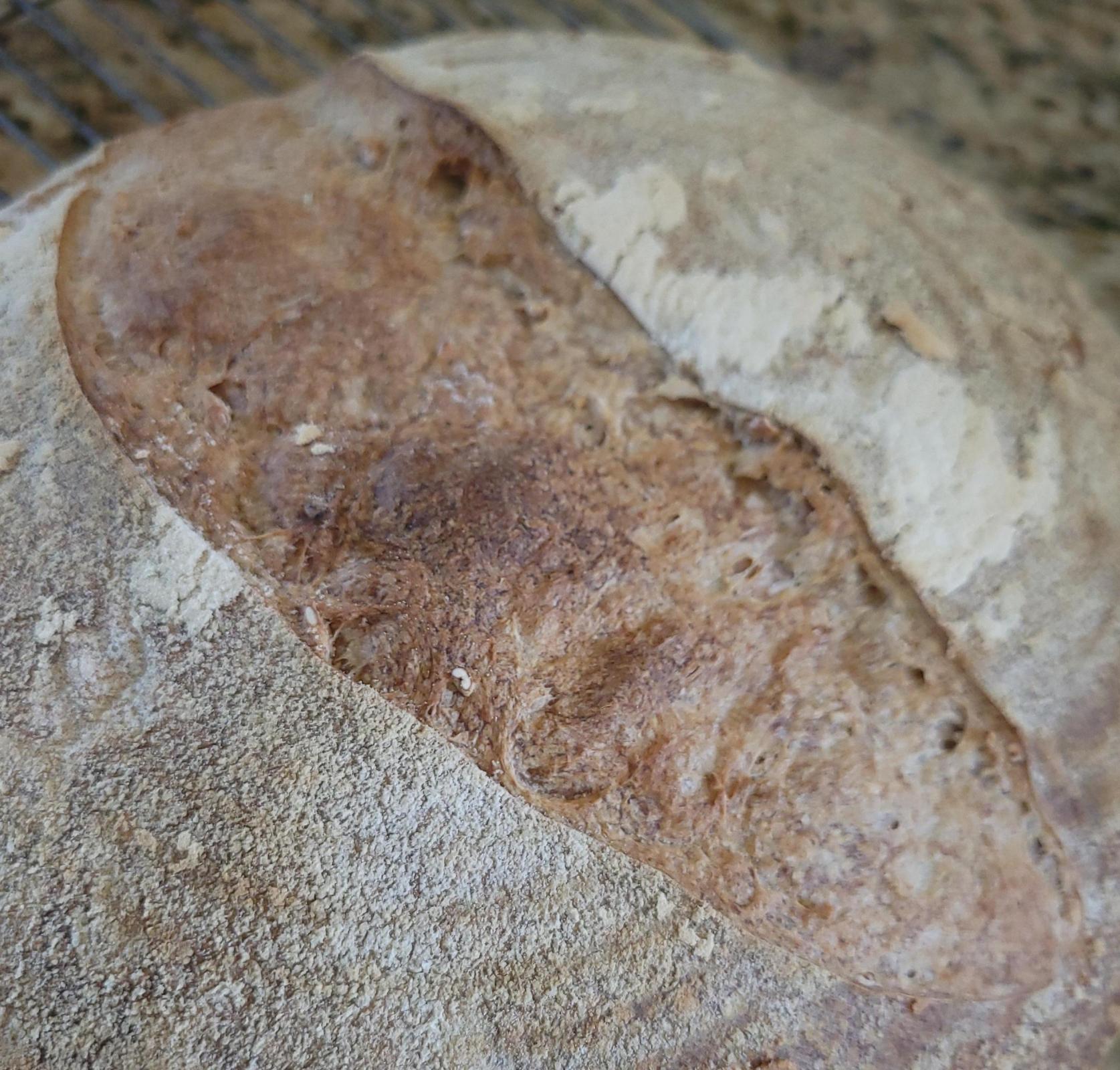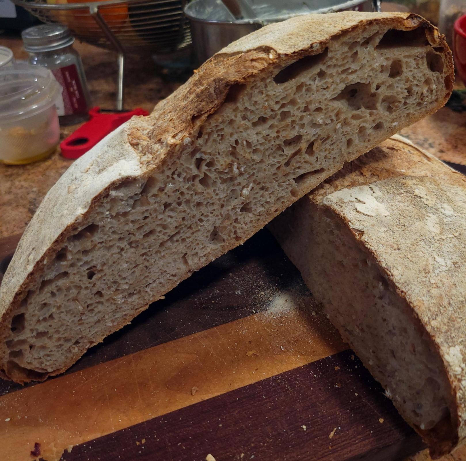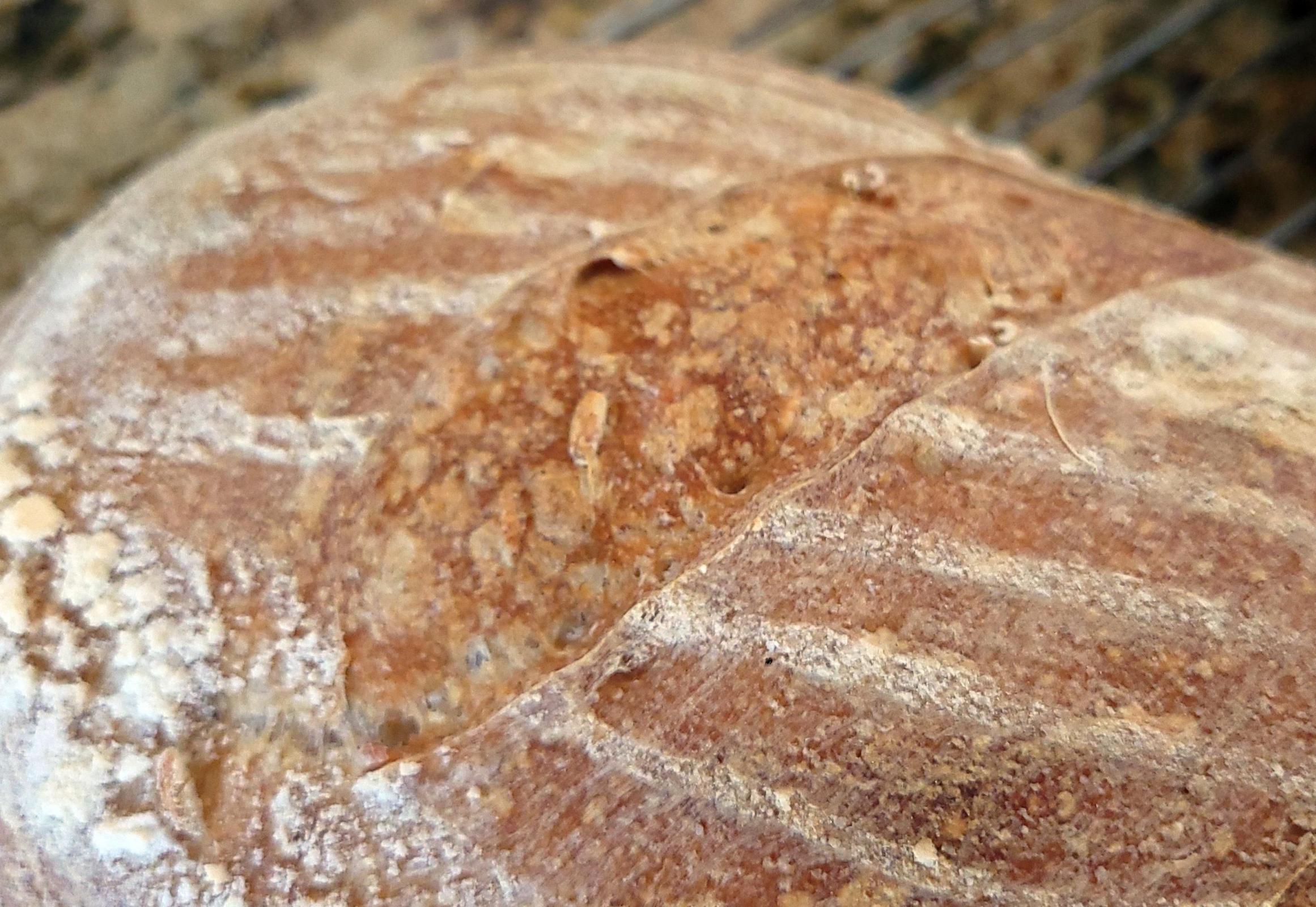 As you can see from the photos below, there was almost no oven spring. The bread registered between 205F and 210F in the center, but the outsides did not blister or even brown well.