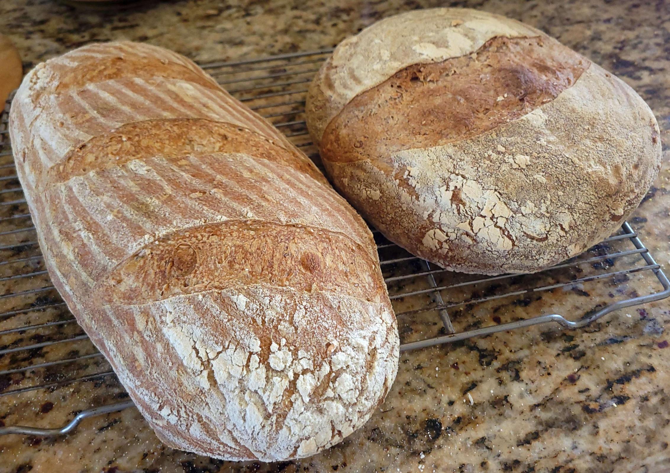 11. Next morning, preheat oven with stone to 500F. Take loaves out of fridge, slash.