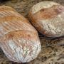9. Divide and pre-shape, rest 20 minutes. Form into a ball for the round banneton and a long loaf for the other.