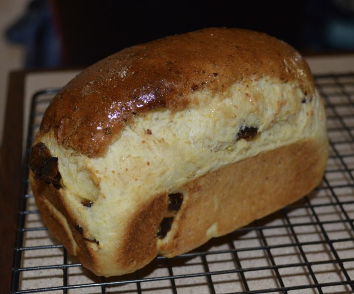The dough does mix quite sticky and i did allow fort he Dates to draw some of that moisture. the dough does tend to get less sticky anyway. This dough with Bread Improver was treated as an Instant dough (no bulk fermentation) although it was allowed 30 minutes rest and recovery after mixing and a further 10 minutes after handing up it was then shaped and placed into some small baking pans which i like to do test bakes in so that i can distribute for evaluation. the proof was fairly quick and loaves were baked at 210C with steam for the first 10 minutes and then turned down to 190C for another 10 - 15 minutes. the finished texture was soft and delicious Dates are great in bread and probably the cheapest dried fruit in the stores here.