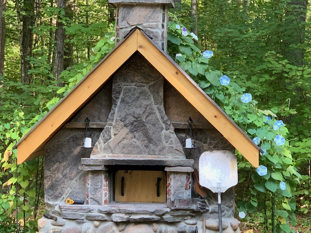 Shelter. Originally used a tarp during winter that was quite ugly. I built a arch style shelter over the oven.
