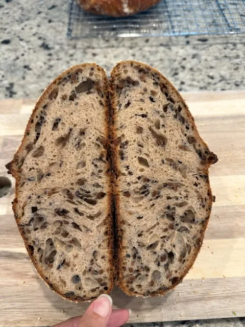 I’ve been baking my way through The Perfect Loaf book and recently been experiencing a lack of oven spring. I follow the recipes exactly, but cut the water by 50% at the Mixing stage of the levain and autolyse. I am located in Florida and Maurizio is in New Mexico so I wonder if humidity is playing a role and I should be reducing the water in the autolyse as well? Or do you think it could be under strengthening or over proofing? My bulk ferment seems to take a lot longer and I never quite match the photos and consistency described in the book. I had more luck when I use my starter directly compared to when I follow his levain instructions. I use King Arthur and Central Milling flour. Photos attached of a sunflower sesame loaf and a basic sourdough.