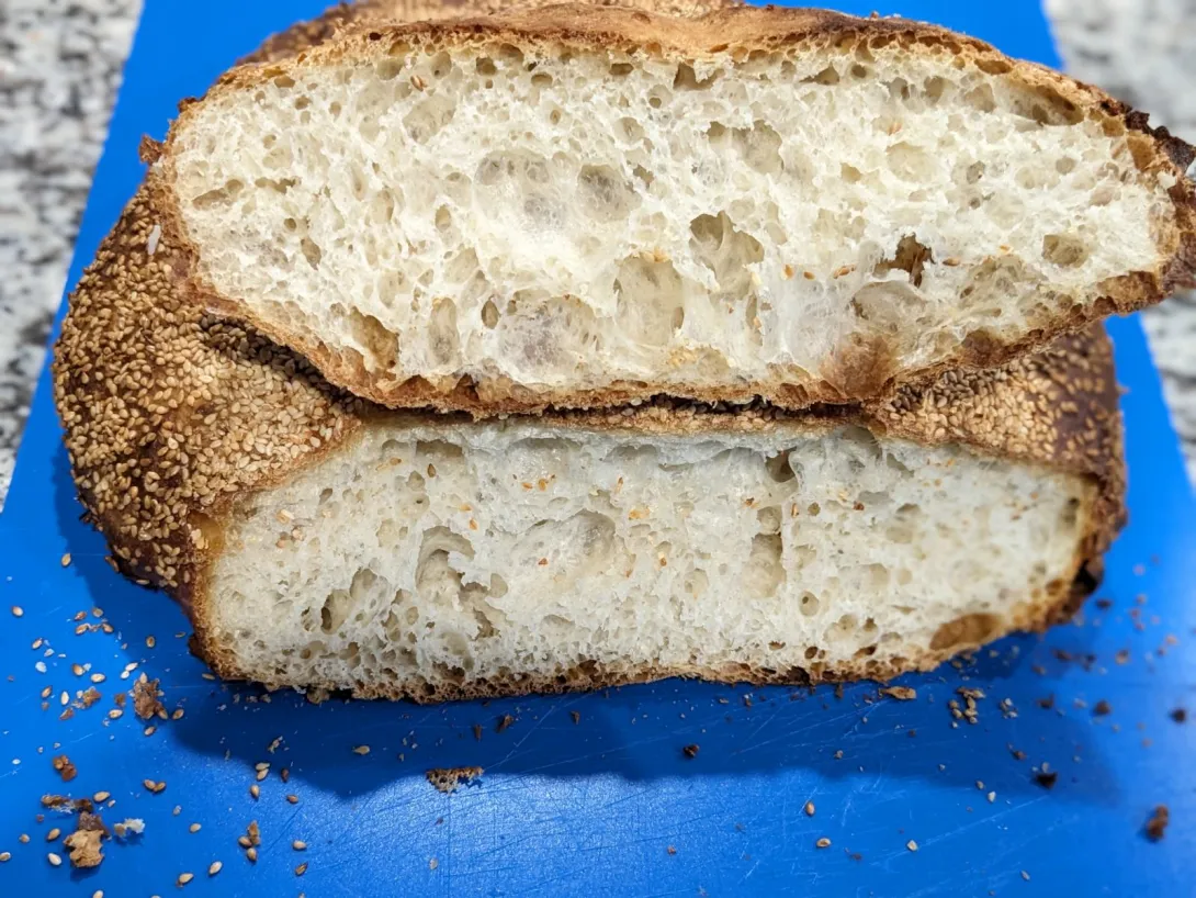 It would have benefited from a few steach & folds during the first rise. That being said, it looks good. I will add the crumb shot tonight.