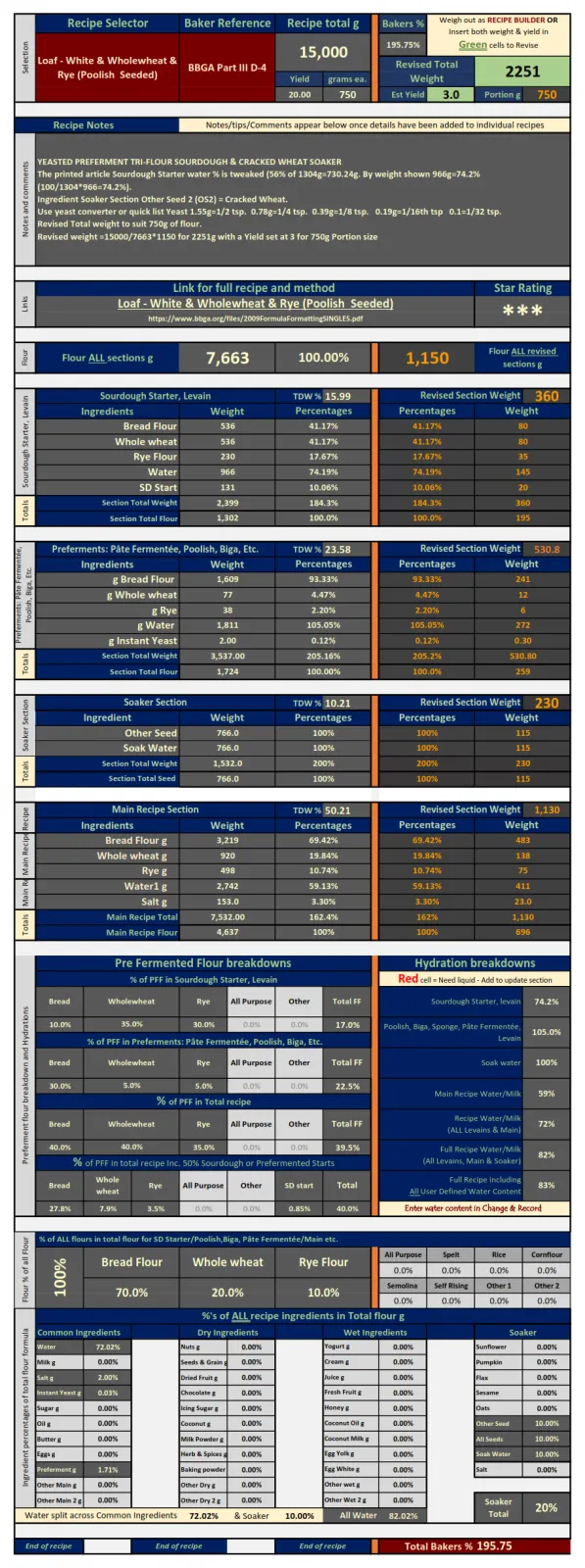 Loaf - White & Wholewheat & Rye (Poolish Seeded) BBGA Part III D-4 Recipe card from metricsbaking spreadsheet