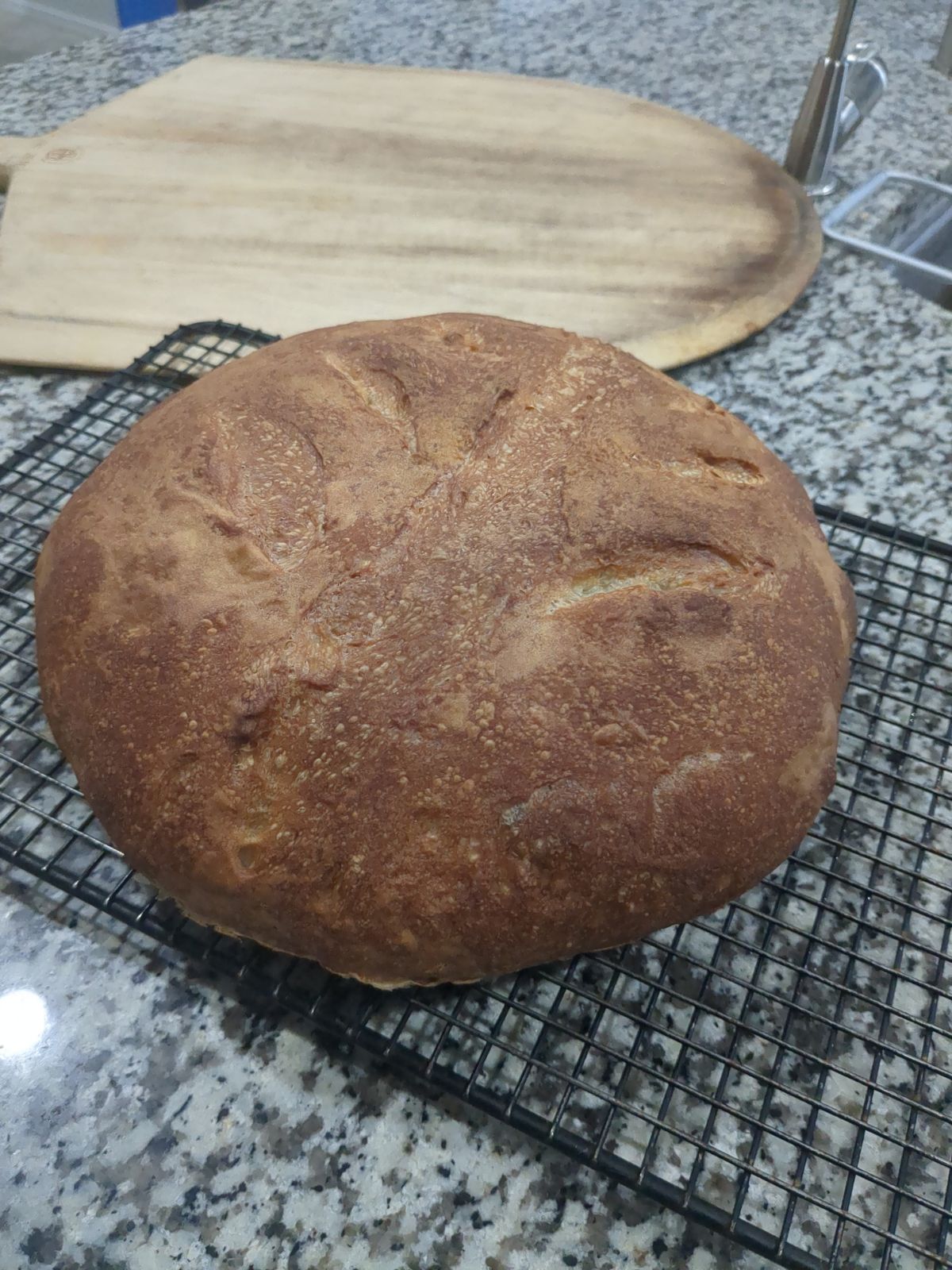 It would have benefited from a few steach & folds during the first rise. That being said, it looks good. I will add the crumb shot tonight.