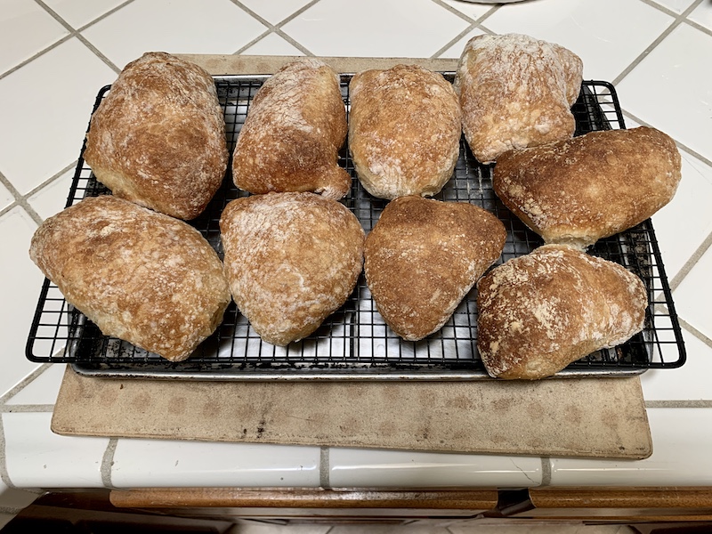 Pan de Cristal is a bread that has intrigued me for some time. It is a white bread similar to an Italian ciabatta but of even higher hydration. I was a bit spooked by the anticipated challenge of handling such a wet dough until I viewed the instructional video made by Martin Philip, the fellow who took Jeffrey Hamelman’s place as head baker at King Arthur Bakers.