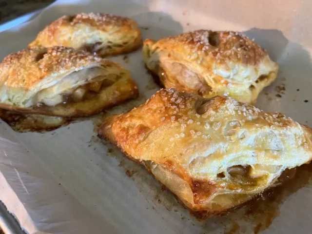 At any rate, I was intrigued with the sourdough aspect of Lisa’s puff pastry, so I had to try it. It came out amazing! The recipe yields 2.5 lbs of dough. The first day I made four apple turnovers with half a pound of the dough. They were kind of goofy looking, because I forgot how to shape them (it’s been a while), but absolutely delicious and so, so flaky.