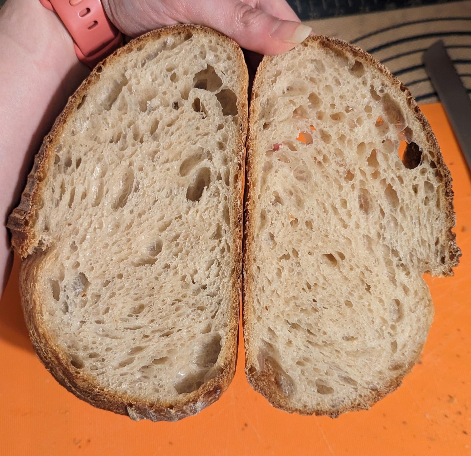 I've been able to get nice crusty ears on previous breads thanks to the steam-trapping Dutch oven, but I'm not sure how to achieve similar results with the baking stone. What's oven safe but tall enough to put on top of the stone over the loaf to retain the steam? Are there baking pans deep enough? Or do I just turn my Dutch oven pot upside down? 🤔