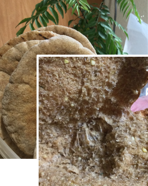 Total dry grains and beans (falafel mix) = 524gr  (about 16 pita, each 57 gr dough ball)