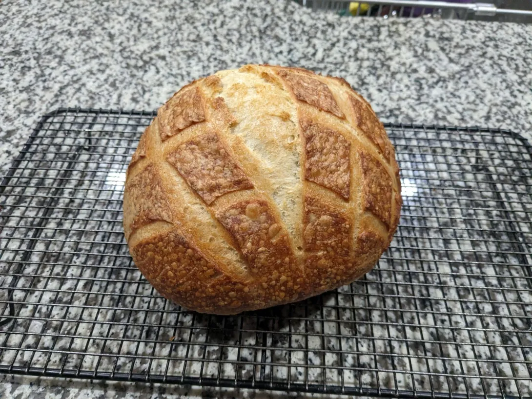 The time and temperature relationship during the bulk fermentation was off. My impatience, fooled me into convincing myself That the flegling boule had reached the end of a respectable bulk fermentation.