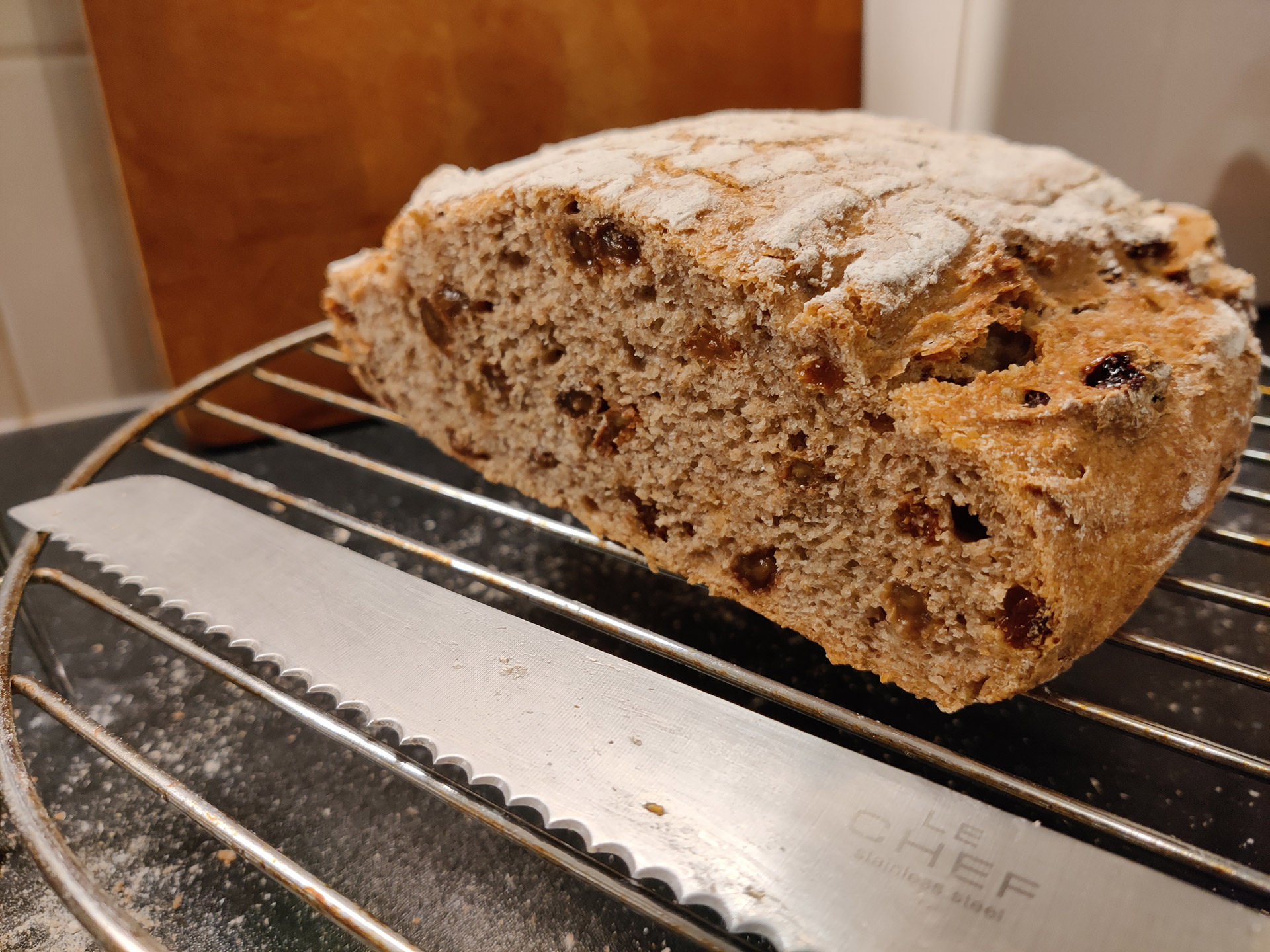 But this 'bagel loaf' was fantastic. All the depth of a high-rye with the sweet spicy smell & taste of raisins and cinnamon.