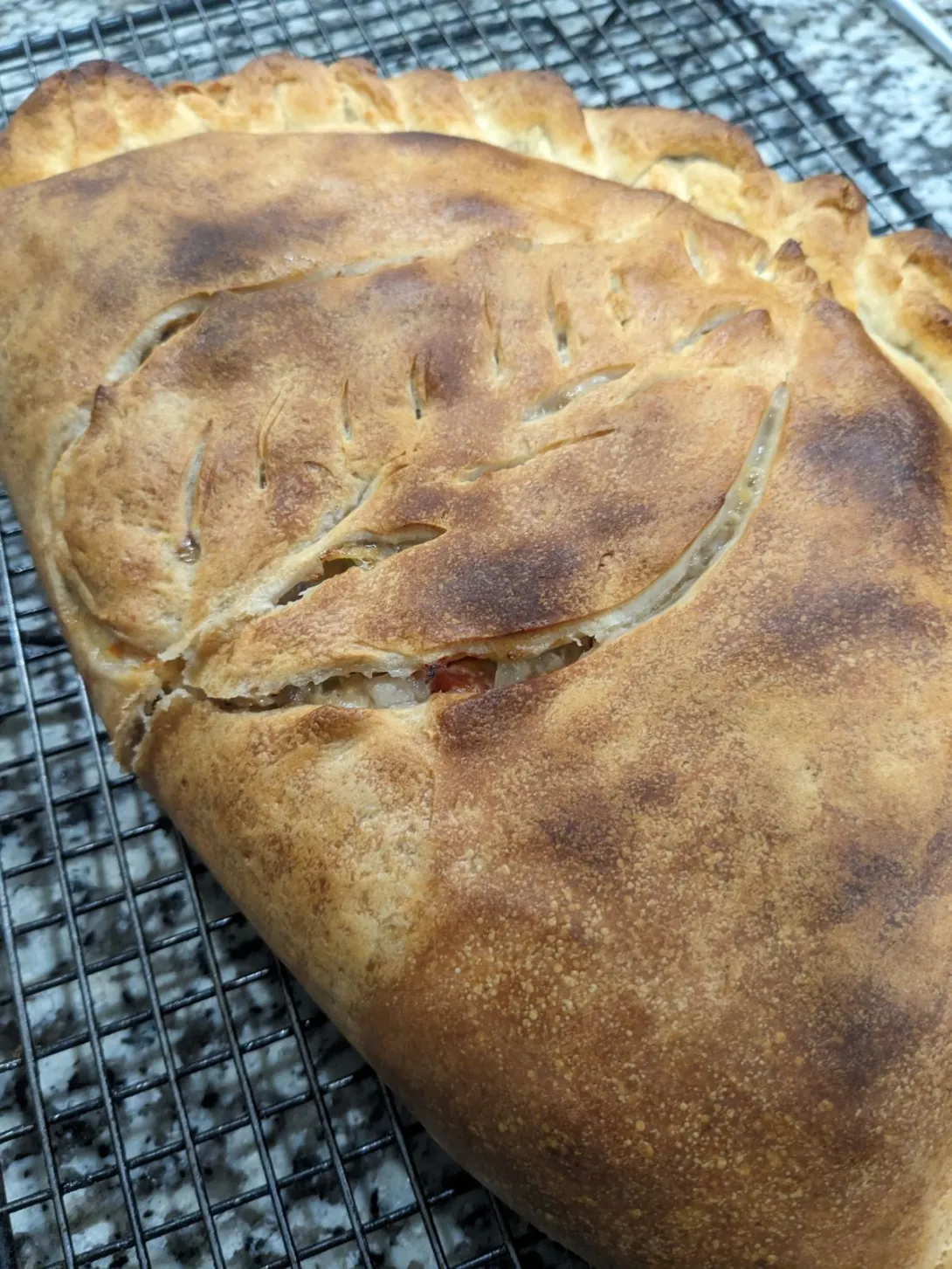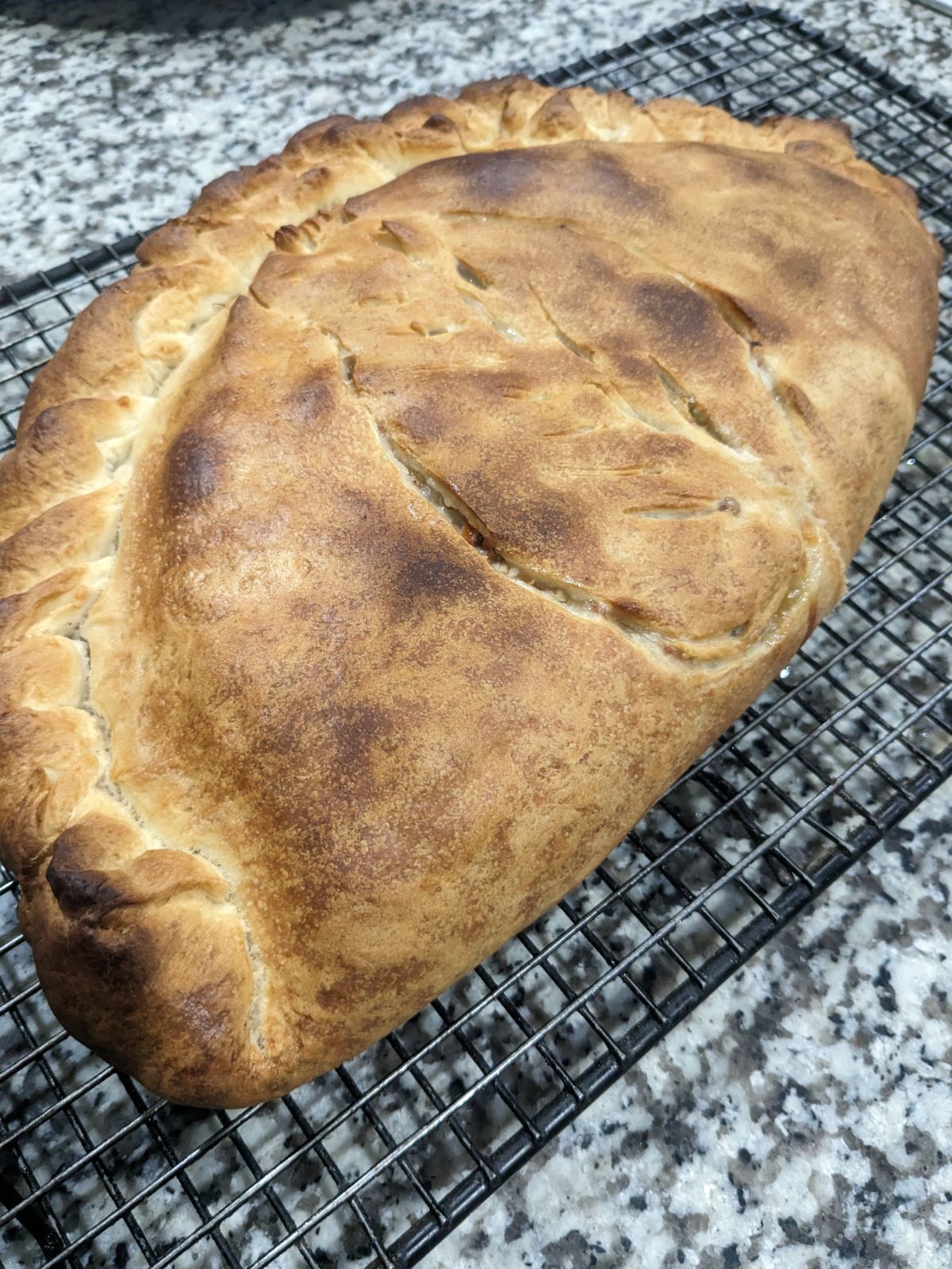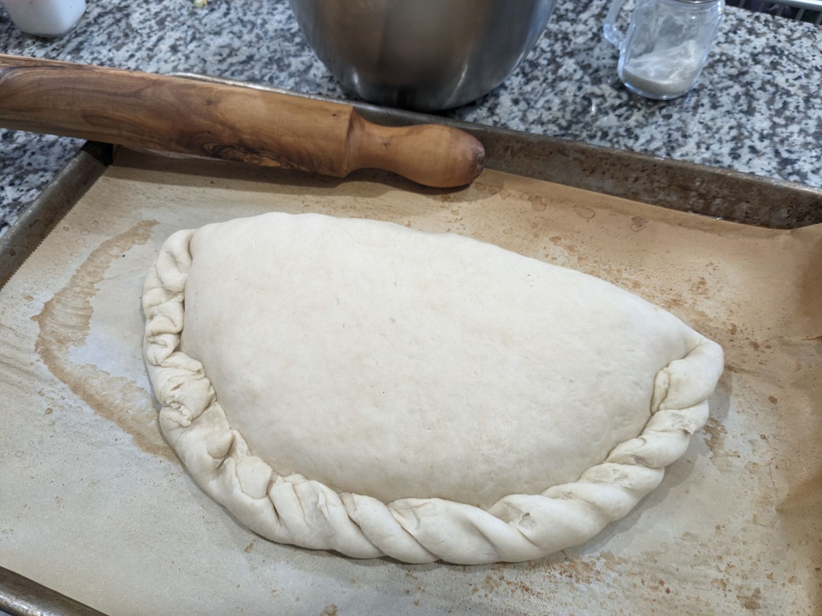 6. Fold the dough over itself calzone/ Patsy style, deal the edges.