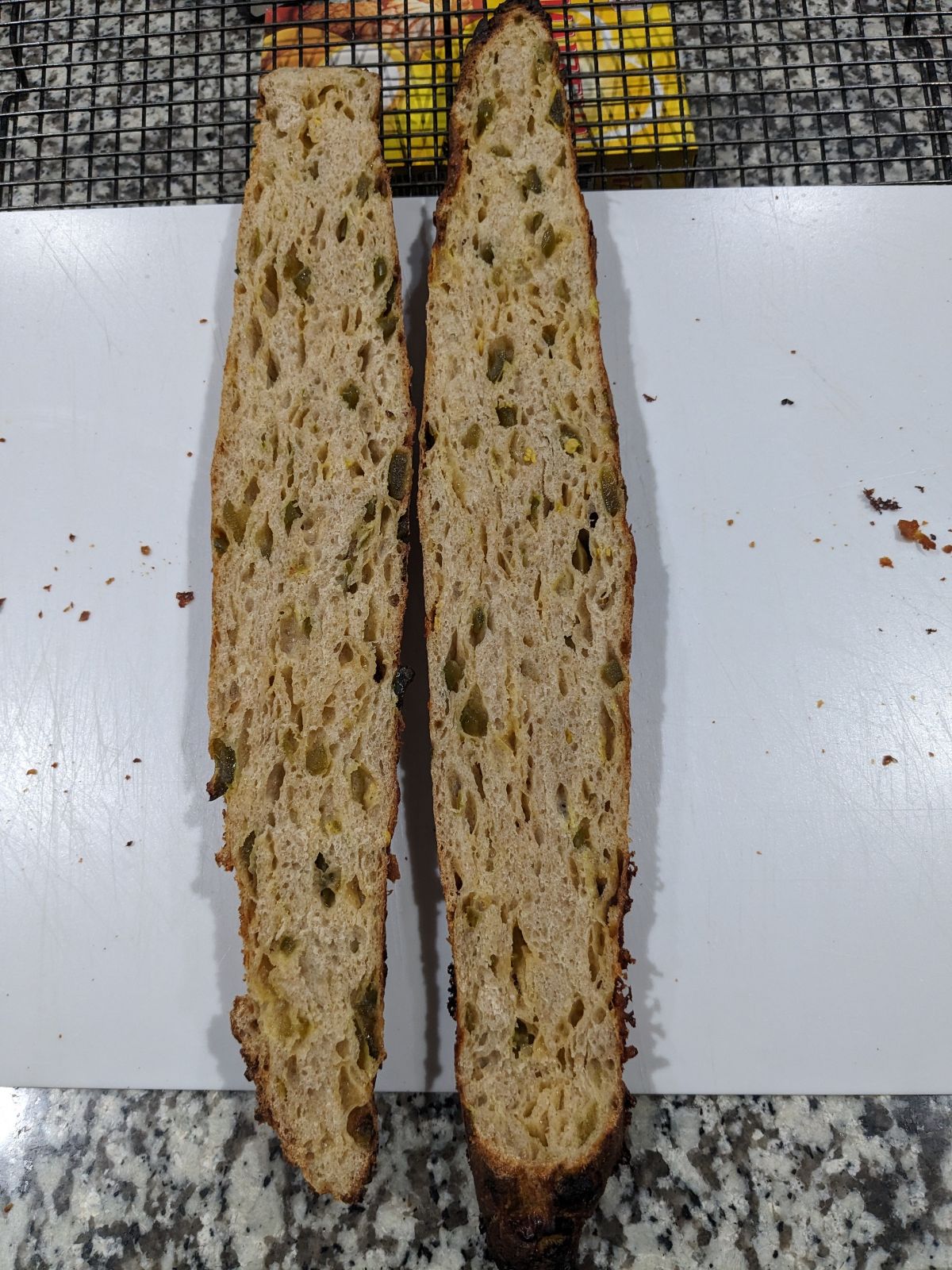 of the civilized world Cowboy Candy and Cheddar Sourdough Baguette.
