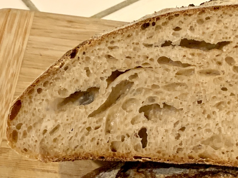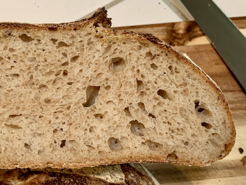 P.S. For those who like very open crumbs, here's a slice of the loaf baked without retardation: