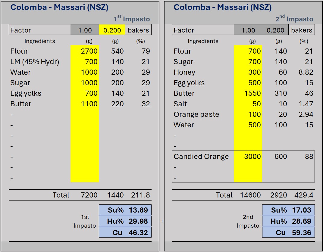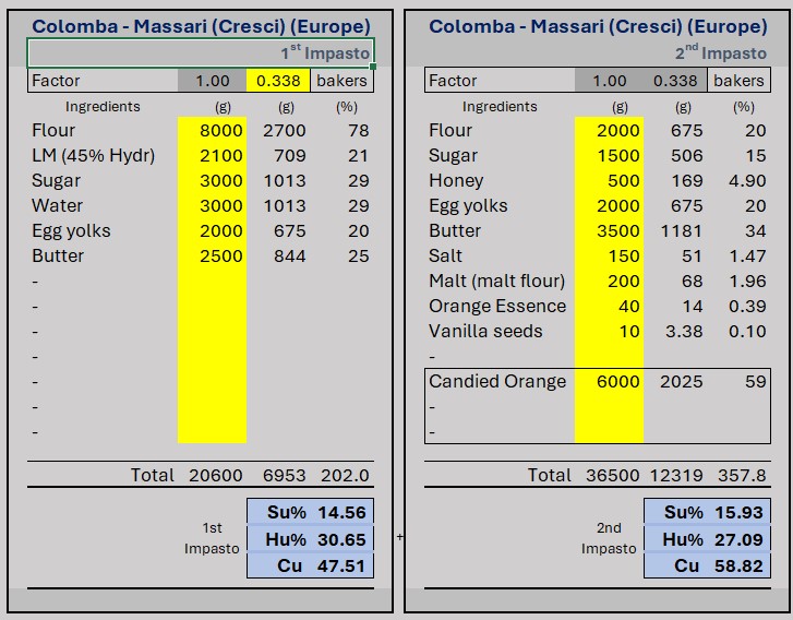 The two-dough Colomba formula in Cresci (p 212 in my copy) also includes Baker's yeast, I guess you are planning to leave it out...
