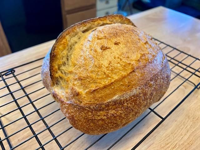 I am on vacation this week and managed to squeeze in a weekday bake.Sorry no crumb shot as this was a gift for a friends birthday.73% hydration 10% whole wheat ...20 hours overnight in the refrigerator. Cheers,Rick Log in or register to post comments That is some great spring Log in or register to post comments