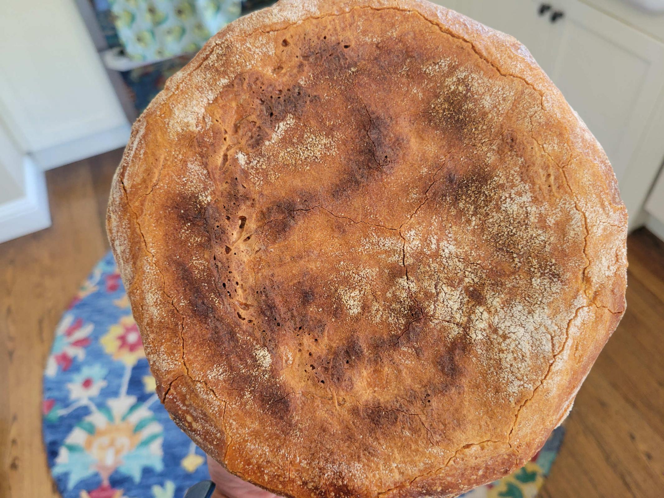 Not sure if you can see in this picture, but the bottom crust has cracked running all the way around the circumference.  I also sometimes get crazing on the top during cooling (although not today)
