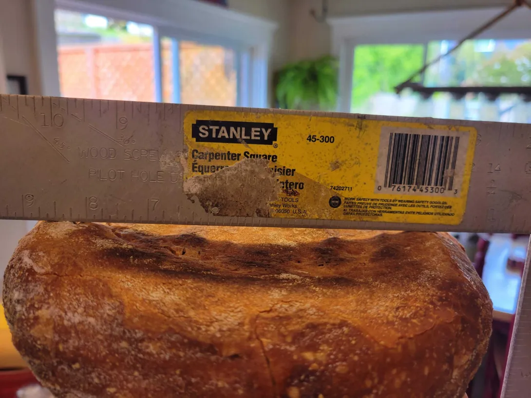 I have an issue where my loaves come out of the oven with a flat bottom, but then it sucks in to become concave when cooling. I'm not sure what is causing this. I bake at 480f for 30 covered and 25 with cover off. It cools on a wire rack in my kitchen which is ~60 degrees. Aside from the aesthetics, the crust pulling in compresses the bottom of the crumb a lbit. I am wondering if this has something to do with my fairly robust crust which is getting pulled inward on the bottom as the pressure inside the loaf decreases during cooling. The bottom of the loaf would be be more susceptible to this as it would have less strength than the domed curve of the upper loaf (or so I would imagine from my hs physics)