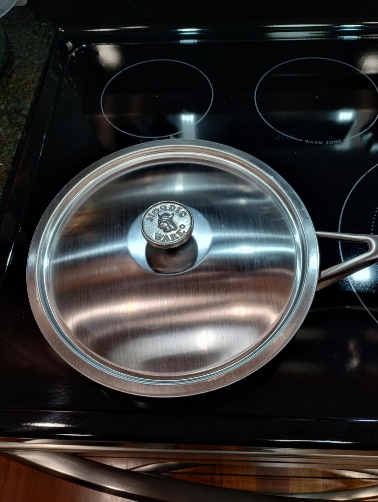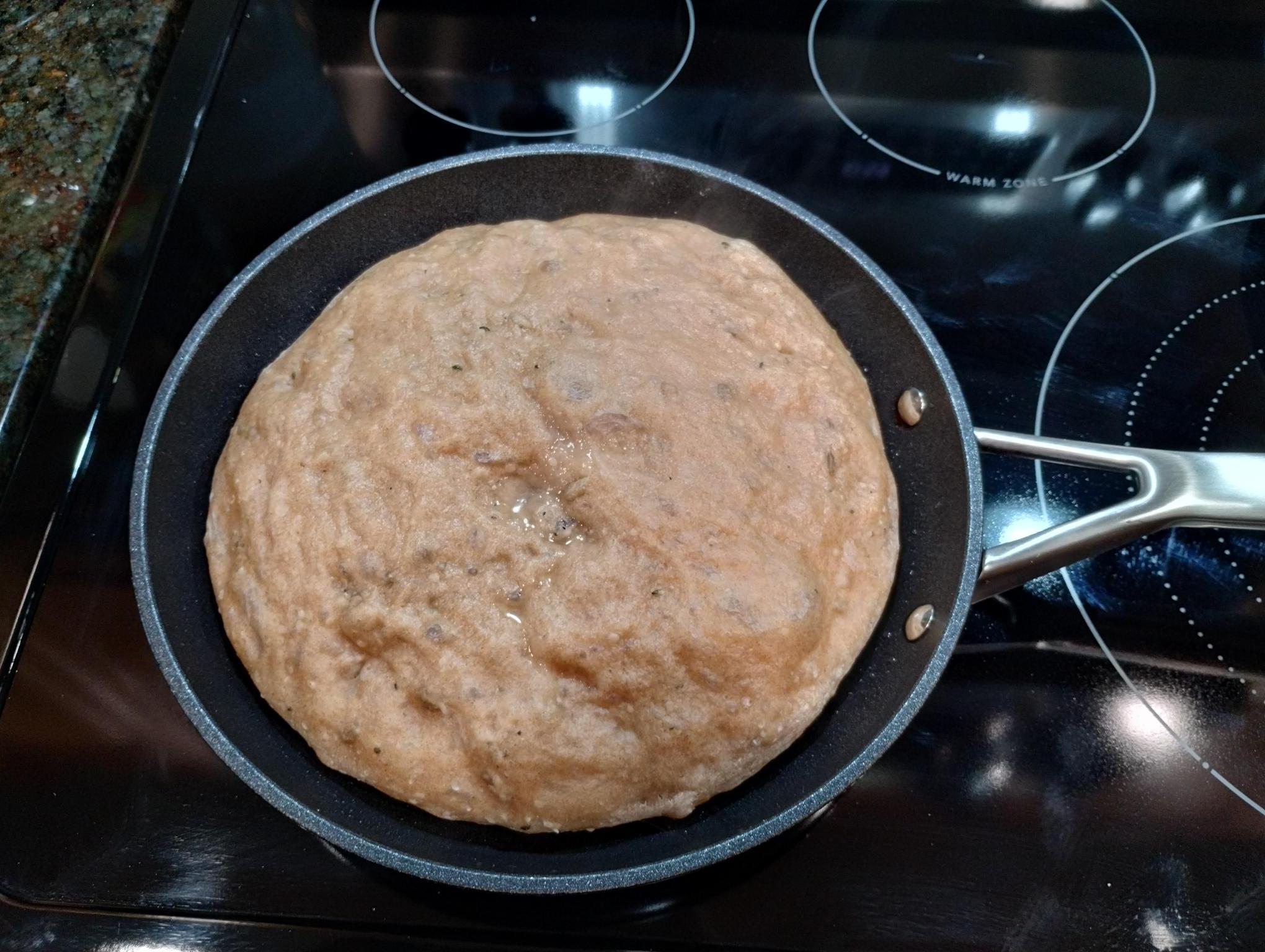 Side note... my frying pan is a Ninja Foodi Neverstick 10.25 in frying pan. Finding a lid that would fit was a bit of a challenge, but thankfully Amazon came through. The lid needs to be domed just a little, and the multi-pan lid we have dips down into the pan enough for the bread to stick to the lid when cooking.