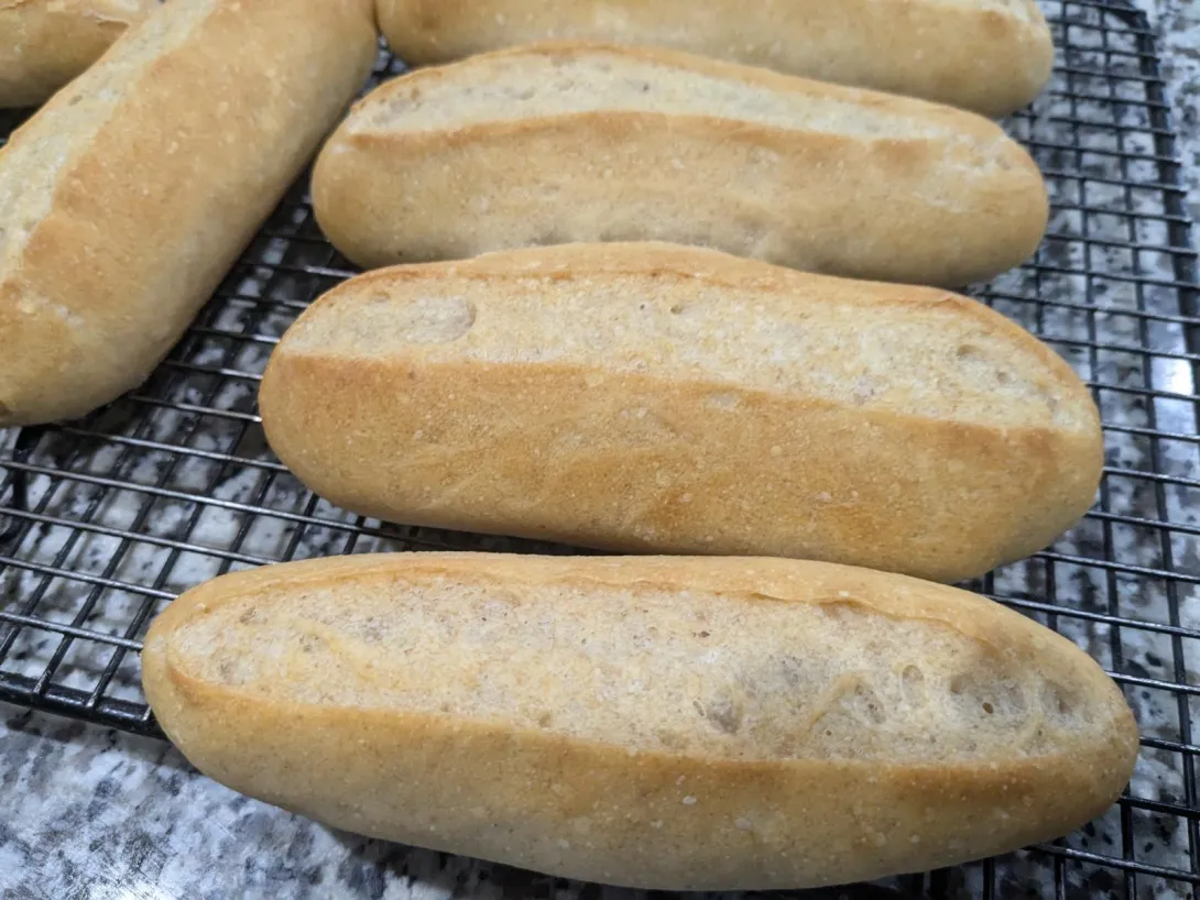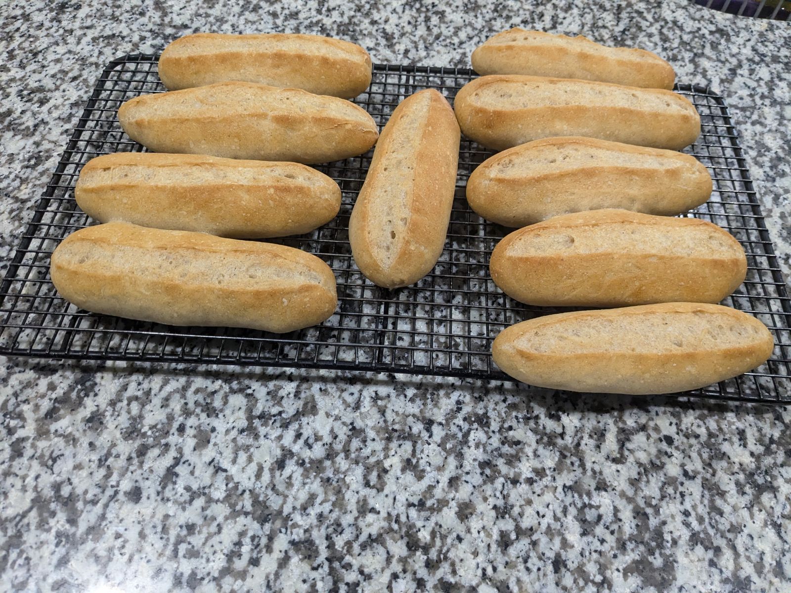 We have today, A set of ten,Semolina &Einkorn whole wheat Hot dog buns.A set of two Semolina & Einkorn hearth breads. Weighing in at 460g. That translates to 16 oz beauties. On track for a morning bake, after a long cold overnight fermentation. Log in or register to post comments