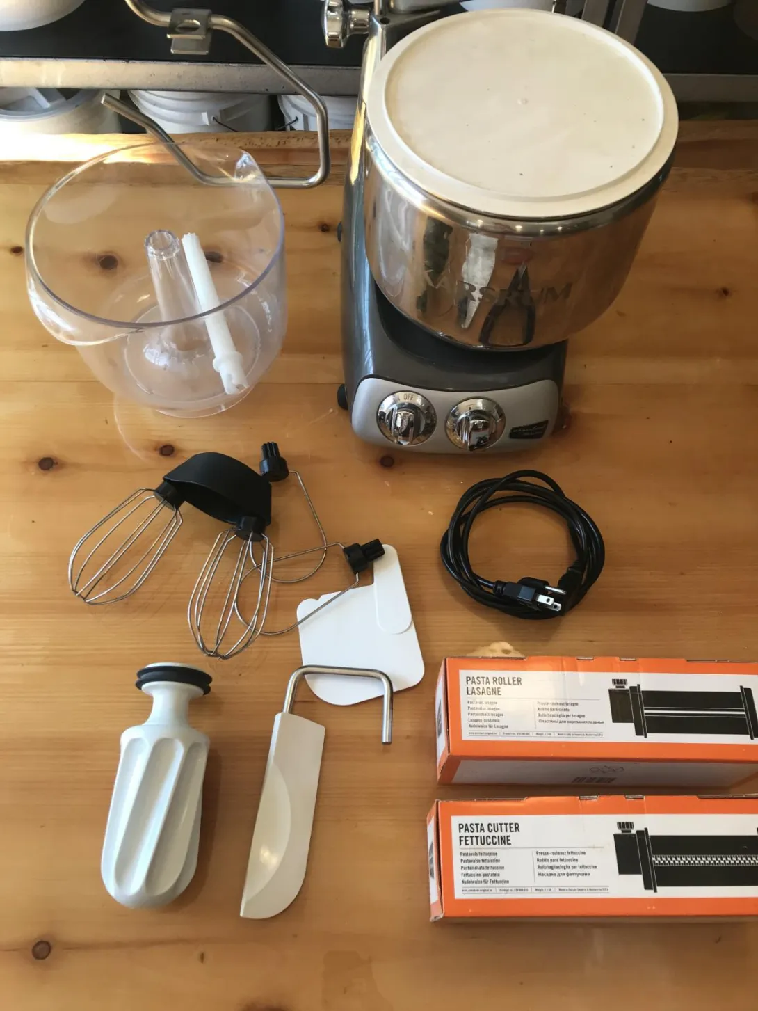 ** I've listed my lightly used Anskarsrum mixer + pasta implements + whip bowl and implements over on FB. Posting my pictures (other than the one above) on here proved a bit challenging. Asking $700, which I think is reasonable, given the add-ons. Shipping cost INCLUDED (<$50), if you're interested. All original boxes in hand.