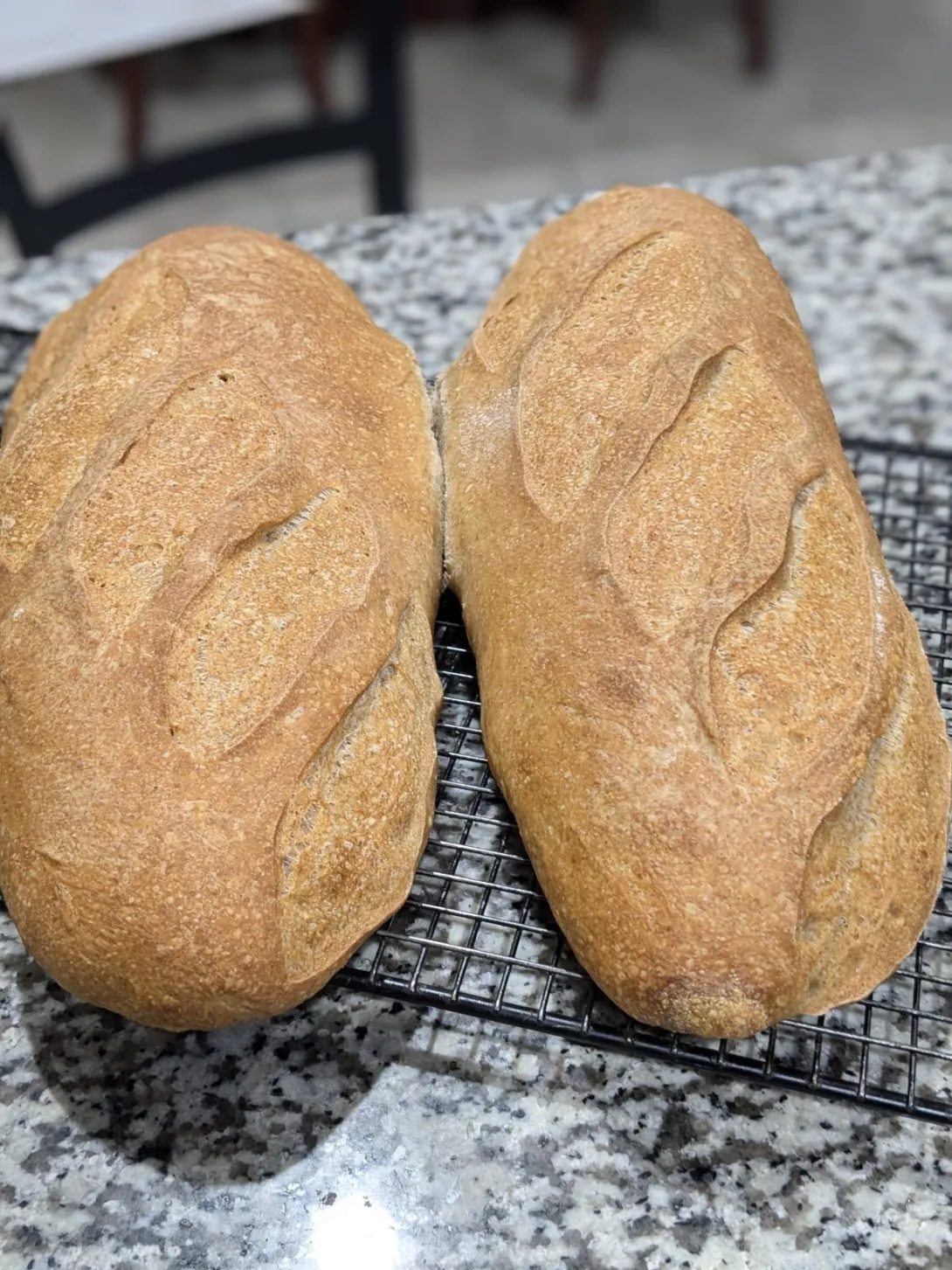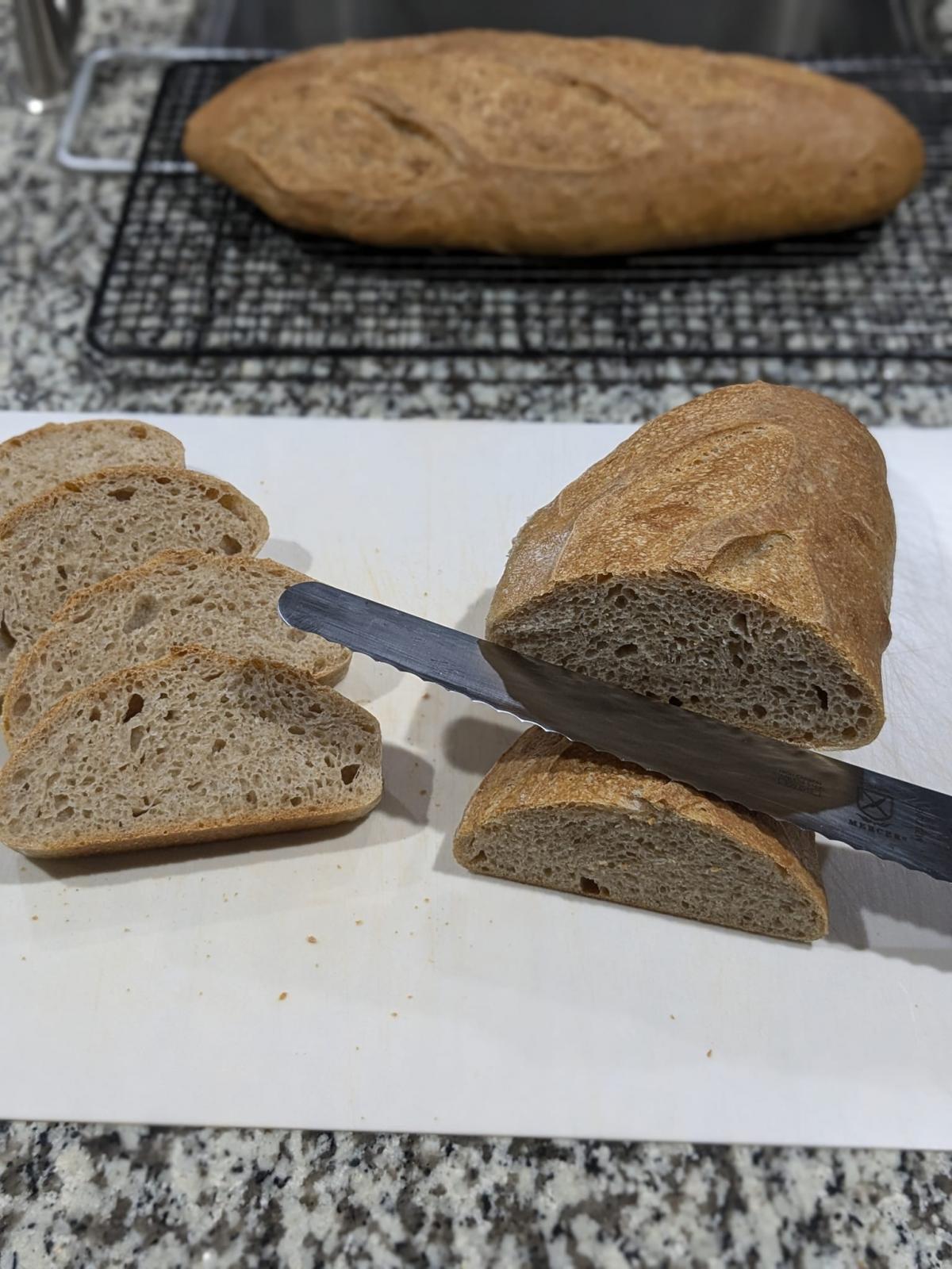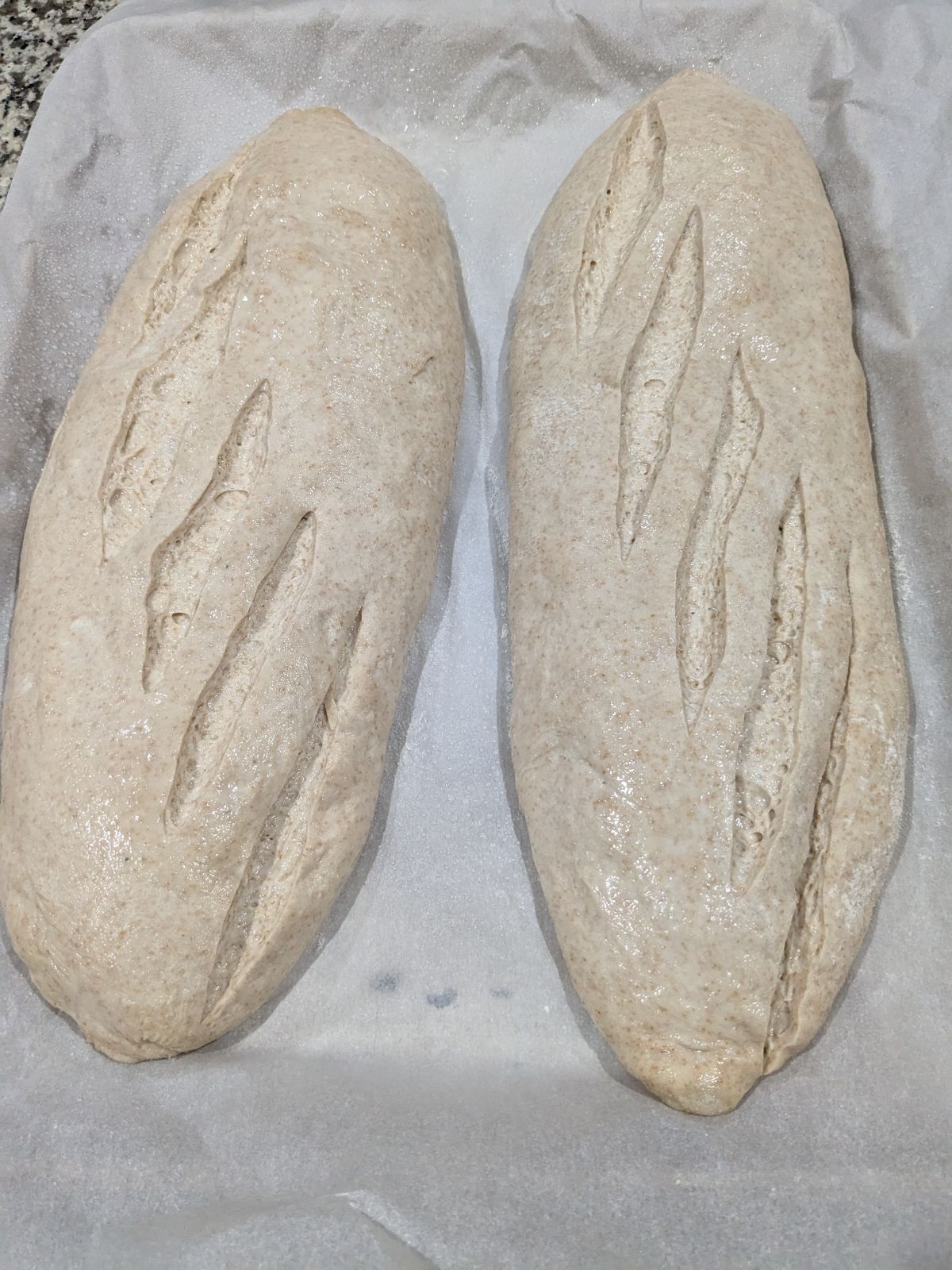 The bake took 40 minutes and reached an internal temperature of 208°F. My only complaint is the 800g filone were too much for the single sheet pan, they touched a bit at the side.